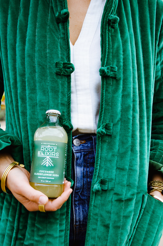 Root Elixirs makes fresh, natural, and creative mixers so you can experience craft cocktails in the comfort of your own home. I’ve been bartending for ten+ years and wanted to create mixers to share with my friends and family, so they could feel confident bartending. I love entertaining, hospitality, and bringing people together through good food, drinks, and good times. Our Mixers – Ginger Beer contains fresh-pressed ginger from a local neighborhood juice bar, dried ginger, cayenne pepper, and fresh lime juice. Grapefruit Jalapeno is a margarita with a kick and has fresh grapefruit, lime, lemon, jalapenos, and agave nectar. Cucumber Elderflower is the ultimate spa/sunny day/poolside cocktail made with cucumber, lemon, elderflowers, and sugar. Strawberry Lavender is juicy and herbaceous with strawberries, lemon juice, sugar, and lavender sprigs. And one more coming out in July! 🙂