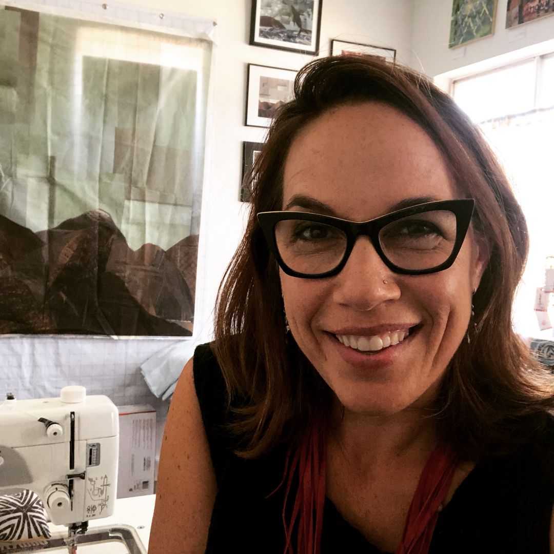 As an artist, I am constantly looking for beauty in the world around me. Life is hard. I’ve had a fair share of pain and grief and art has been a major part of my healing and learning to see beauty through the madness. My artwork is able to carry the burdens of my heart and as I spend hours working on pieces, I come back and find that there was beauty made even as I processed the hardest things. My work has been described as collaged textile paintings or fabric mosaics – the series I am working on now are natural oculus or vortex shapes that draw the viewer into a place of wonder and meditative thought. I’ve been told people feel they can fall into my work. When I make them, they are a spontaneous, improvisational process that takes many hours and the making of them brings me into a state of flow – I am excited when my viewers say they can feel that flow themselves. The journey that has led me here started later than it did for many artists – I didn’t ever consider being an artist until the end of my college career when I ran out of Art History classes and took my first official art class. I wouldn’t say I was an instant talent at all, but I loved the art making process so much that I became addicted to making it. For the past 25 years, it’s what I want to do all the time, through a design career, marriage, motherhood and entrepreneurship – I make art because I love making art. And when life got hard, I learned that art would never get tired of hearing my story over and over as I processed it. A blank canvas was a container big enough to hold some of my biggest hardest questions. I have always loved design and teaching as well, so part of my business is also sharing what I have learned about creativity (it’s for everyone) to people and groups of all sizes. I love being a part of the process that allows people to tap into their own creativity. No matter what I am doing though, teaching, speaking to groups or making art alone in my studio – I always am focused on the fact that there is beauty in creativity and that tapping into that heals us. It helps us get “unstuck” and frees us to live more openly.
