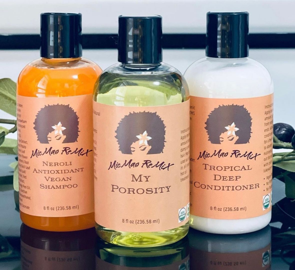 MicMas ReMiX began when I became a mom. I decided to return back to my roots with a “big chop” and stopped putting relaxers in my hair. It was a relearning my natural hair which made me conscientious of the products I had been using. I started using natural ingredients like coconut oil, olive oil, mango butter, etc. and started seeing results with the health and growth of my hair. My friends and family started noticing the difference, as well, and asked me to make them bottles of my oil formulation for them. They loved the results they were seeing in their own hair and this encouraged me to start a small business selling my hair recipes in a bottle.