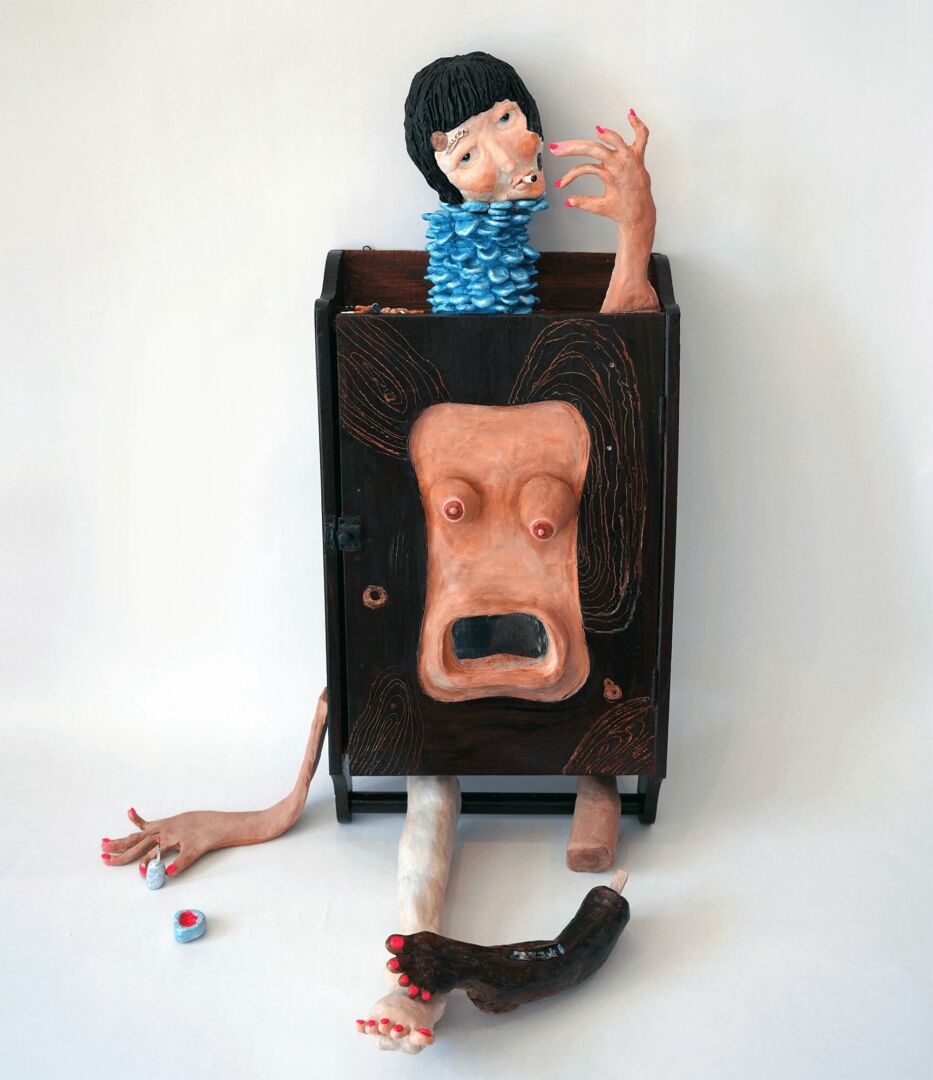I find inspiration in objects and furniture that show signs of age or faded colors. When traveling or visiting a new place, I enjoy exploring nearby antique shops because I immediately envision the type of work I want to create upon seeing certain objects in such shops. I love everything about objects found in antique shops. I prefer items with wood grain and frayed edges over those that are overly polished and pristine. I find comfort in the distinct scent of wood and dust carried by old items. Disassembling, painting, and adding clay to create new forms excite me. Some items even bear labels indicating when and where they were found. They spark my imagination and make me wonder about their previous owners and the stories they hold.