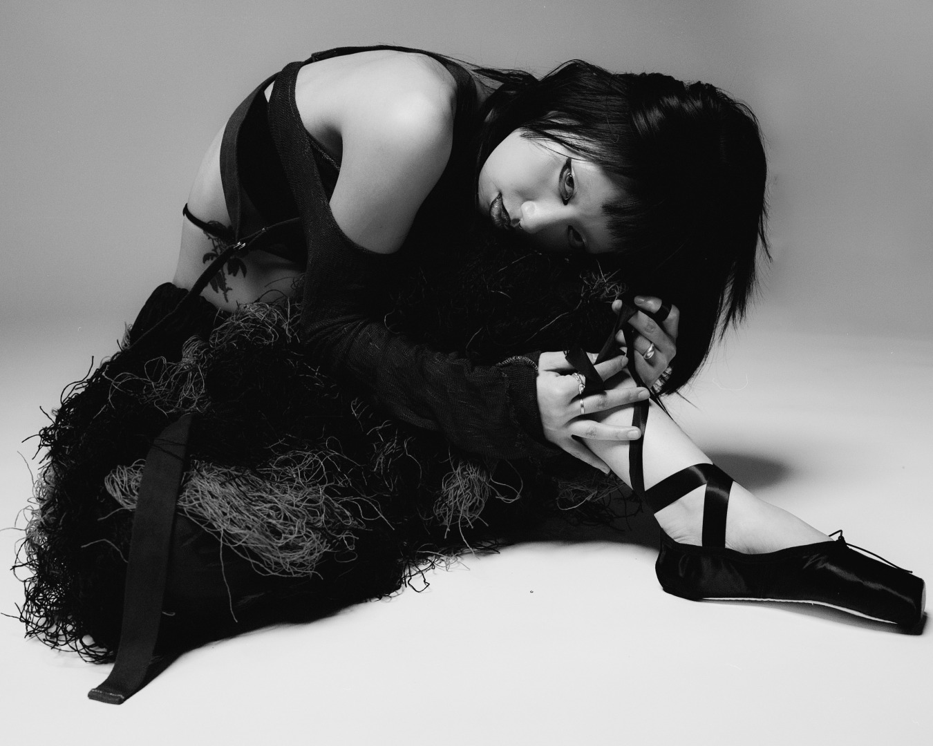 I’m drawn to materials that feel alive: sharp metal, soft hair, sound, skin. They push back, they speak. Modeling extends that same conversation; my body becomes both subject and surface, where emotion meets distortion.