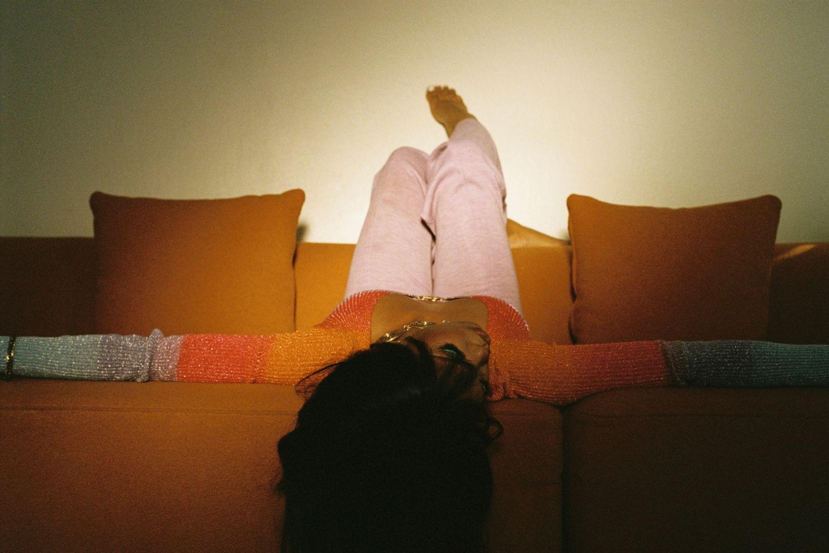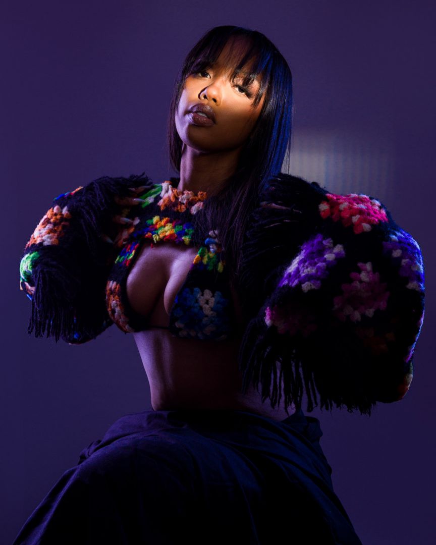Pink Shirt (Performance Shot): Carlos Goat (@_carlosxgoat_) MultiColored Shots on Orange Couch: Lena Elgalawy (@lenaelgab) Crochet top with big sleeves & hair in bangs: Cory Graves (coryjgraves) Sidewalk shots with AJ, the One shirt on: Nadwa (eribridgian)