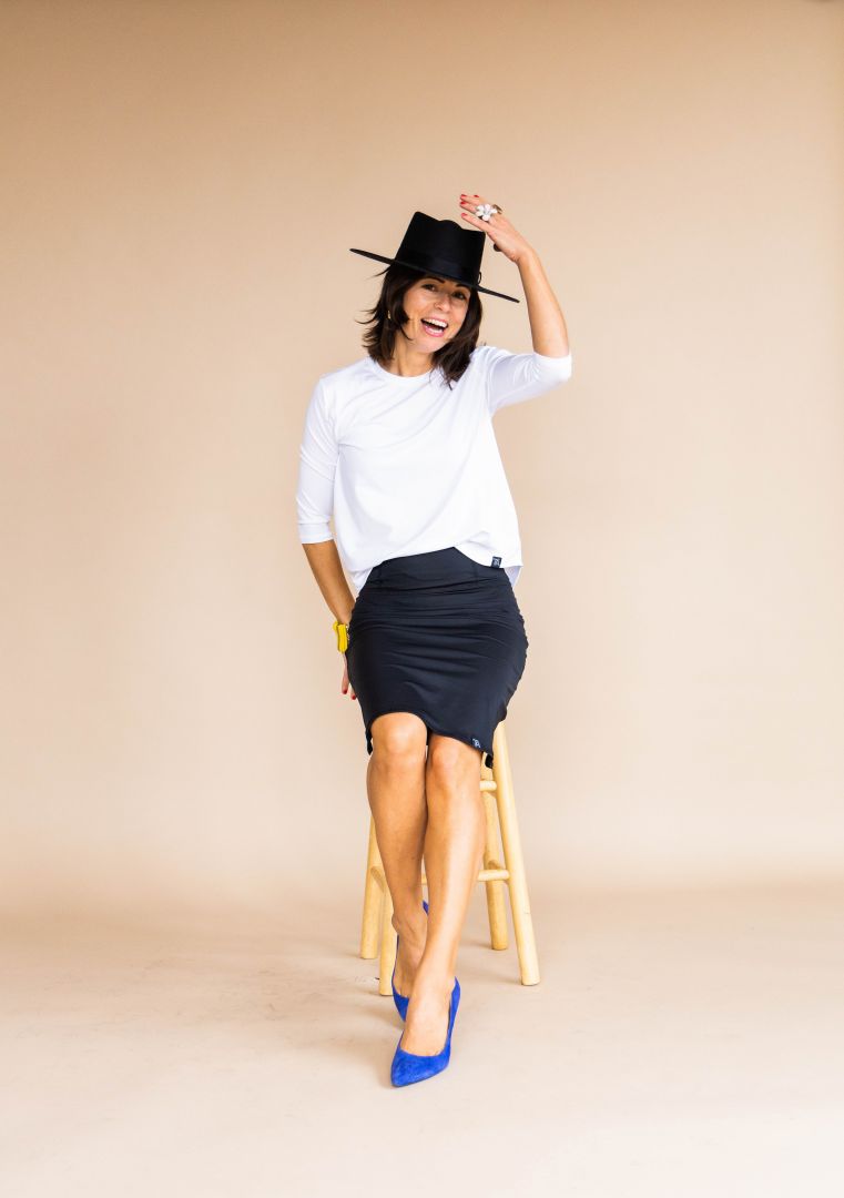 Right after my third baby, I had been let go from my fast fashion job. This was the best possible thing for me, as it let me reevaluate what I wanted to do going forward. I began to speak to a career counselor who told me I should do something for my “community.” As I was hiking through Acadia national park in Maine, I came to a realization that I had two communities. As a certified yoga instructor, I had my yoga community, but I also had my religious Jewish community. Each of those communities had problems that could be fixed through fashion design. I was able to connect with someone to help me refine my mission and create the concept of my brand.