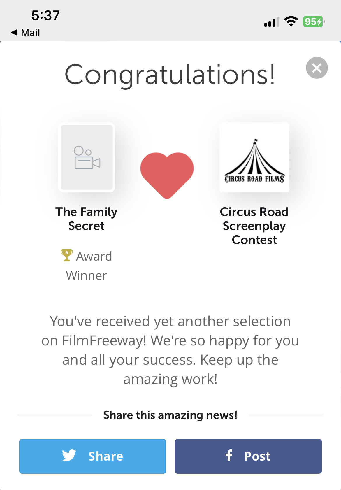 My first production job came from a connection that I made at a film festival. I didn’t work in production again for a couple years until a friend got me a job as a production assistant on a reality tv show. I made friends and worked my way up the ladder, and now I’m a Producer/Line Producer and an award-winning screenwriter. It wasn’t an easy journey, especially starting out. There were many times when I paid for my own travel to go work on shows across the country. I’d end up barely breaking even on those jobs, but I gained invaluable experience. Making good friends, working your butt off, a sense of humor, and an adventurous spirit will get you far in this industry. Though it’s very discouraging sometimes, keep pushing forward. If there’s nothing going on, make your own stuff. This world is a huge place, and the opportunities are endless; sometimes we need to make those opportunities ourselves.