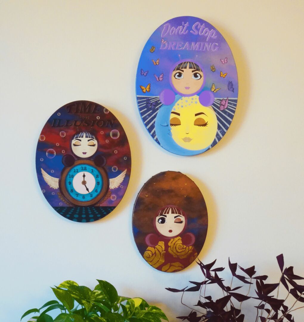 Since creating artwork with O was a bit of a happy accident, every opportunity to share her with the world has felt magical. It’s taken time and effort to get my work out there, and I’m so grateful to my community of fellow artists for their encouragement and support. Community is such a big part of being an artist; being able to reach out to someone to brainstorm ideas or get a pep talk when I’m feeling unsure is so important. The people I’ve met on this journey have added so much richness and joy to my life, and I couldn’t be more thankful.