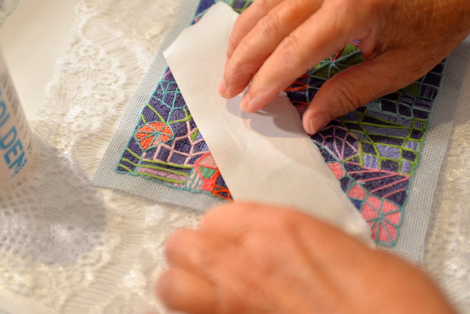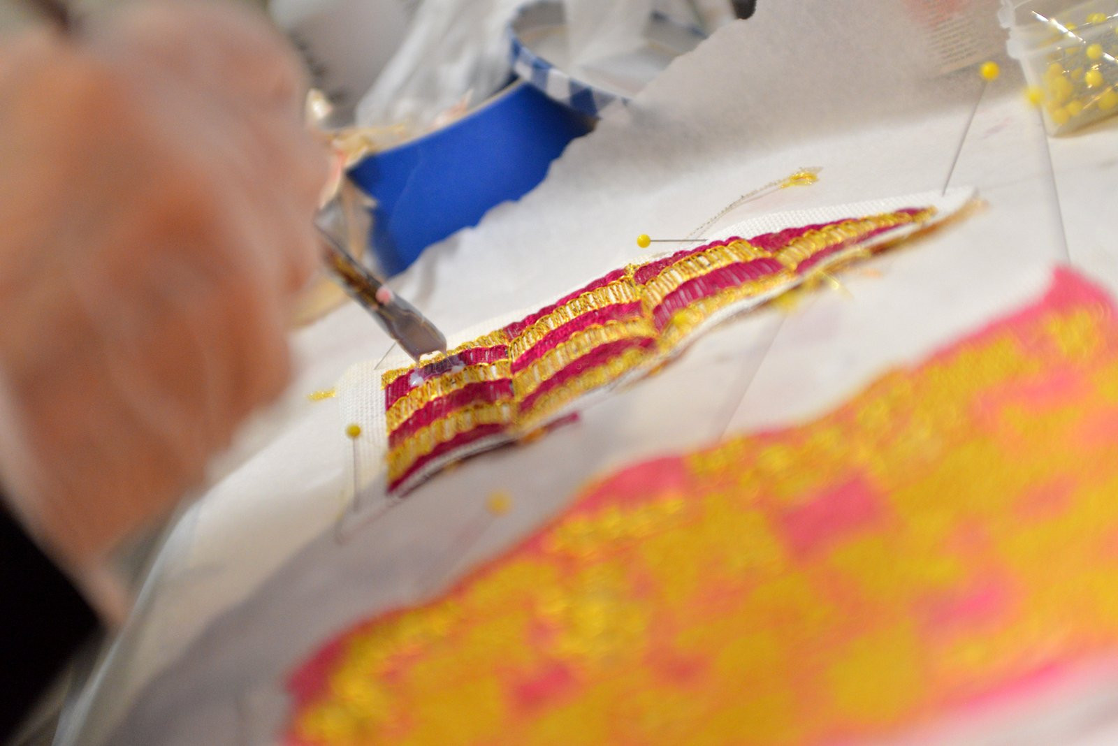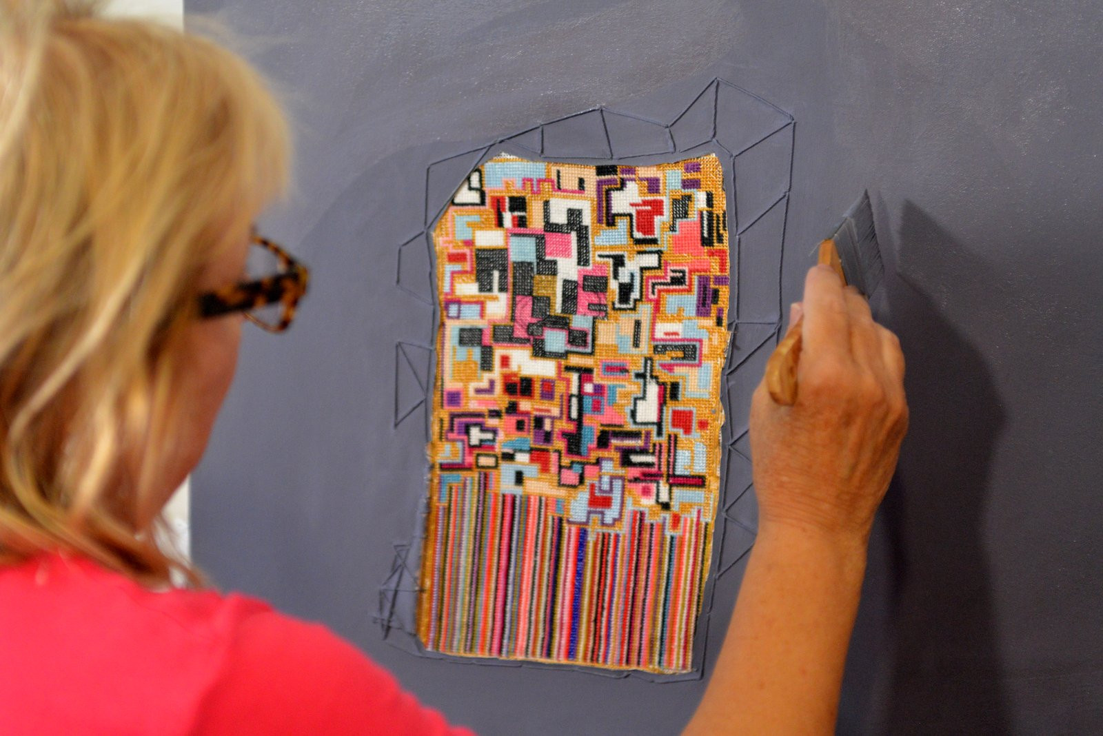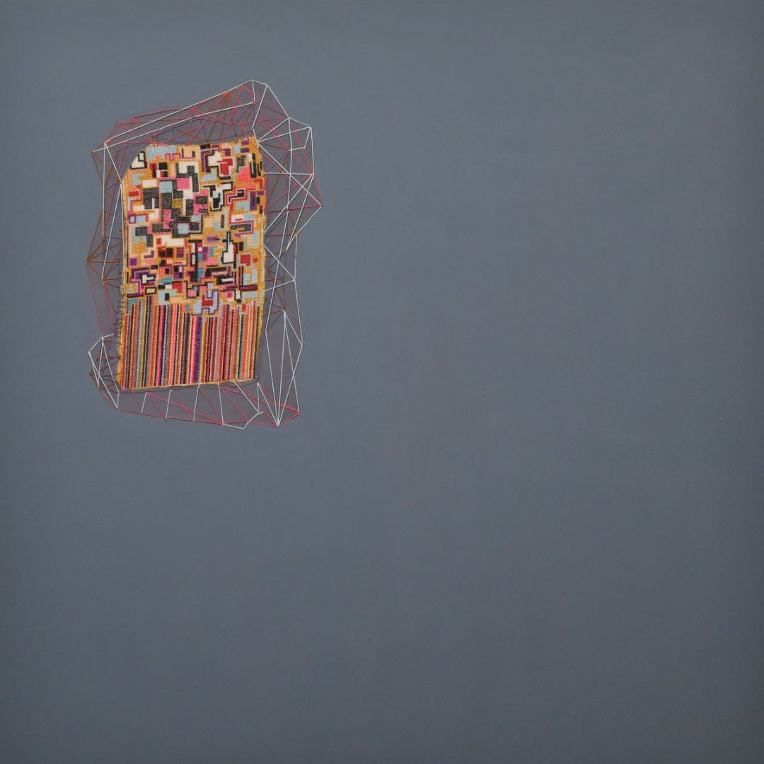 My choice of media is what sets my work apart from others. In the last several years, my studio practice has expanded to include both needlepoint, an important part of my paintings, and a unique color palette that I have created using natural powdered pigments, gesso, and marble dust. My creative process takes the history and tradition of art & handicraft and moves that process into a contemporary space.