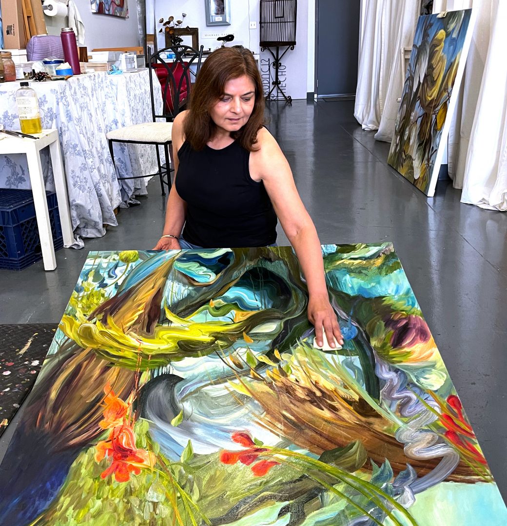 My elementary school motto was ‘Courage is Destiny’. This has always stayed with me and when in doubt, it has helped me take the leap. After raising my two wonderful children and a lifetime career in technology, I knew I had to make a change. I ended up taking some art classes and that opened a whole new world. I realized that art had always been inside me. It was calling and I wanted to dive into art deeper. I restructured my life and went back to school to get a Master of Fine Arts. Art school, later in life was an amazing experience. I flourished and decided to become a full-time artist. There was plenty of hard work, bumps, and self-doubt, but I stayed true to myself in my art practice and committed to this path with a passion. I believed in myself and have never looked back.