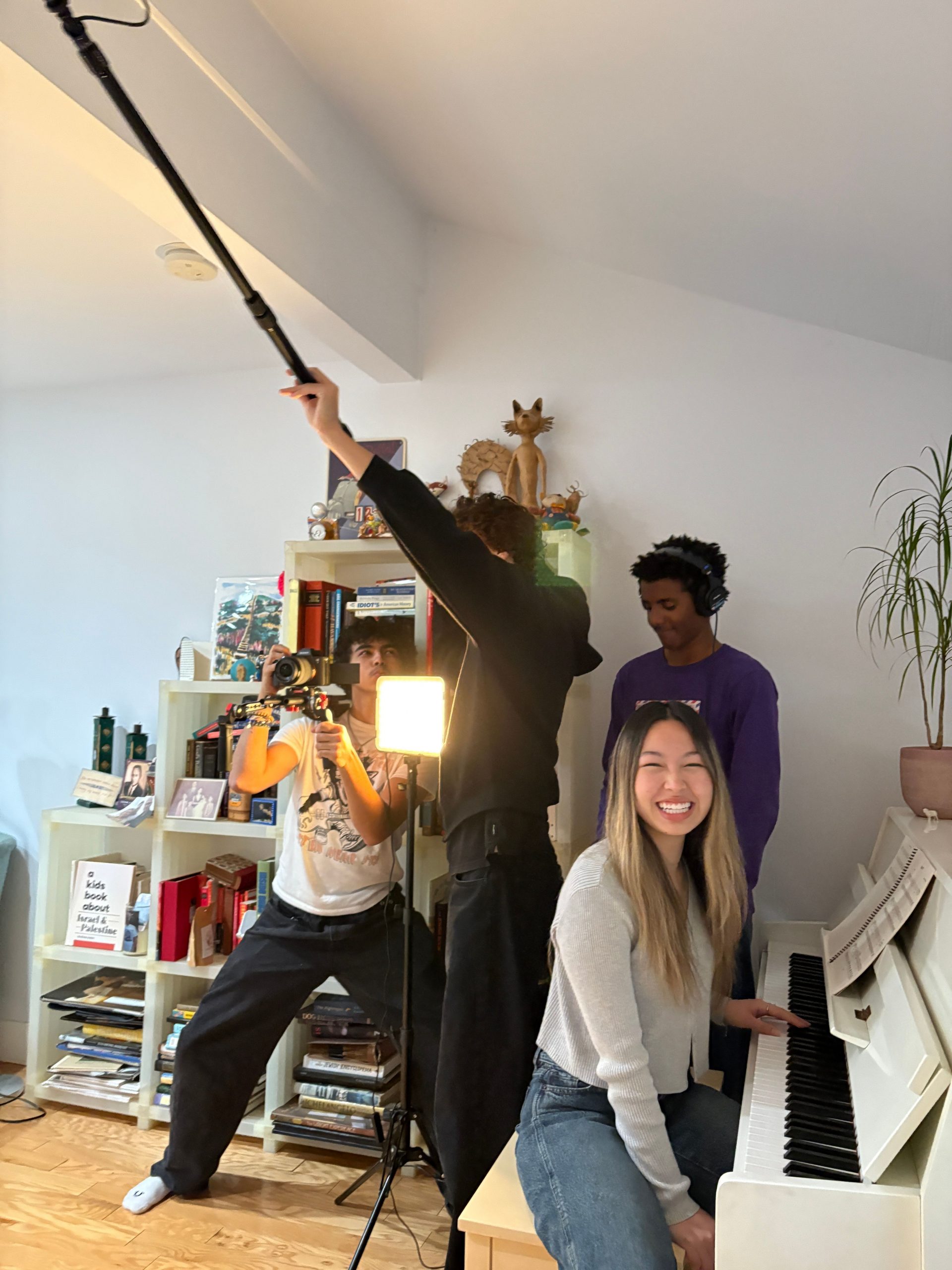 I made my first film at 7 years old on my mom’s Iphone, which was an Imovie trailer. From that moment, it became my go-to hobby in my free time. My mother then handed me her old Sony camcorder, which I used to film everything around me — including a video of a family dinner where my grandparents asked me, “What do you want to be when you grow up?”, and I responded with, “A director!”, clearly confident in what my future was. Since then, I continued to film more and more. I progressed from iMovies to independent videos, where my friends and I created our first production studio during quarantine in 2020. That lasted all of two years, as we were shoved back into school at 13, and I began creating films rather than essays for assignments. I then went to high school, and slowly started to build a group of other filmmakers around me.
