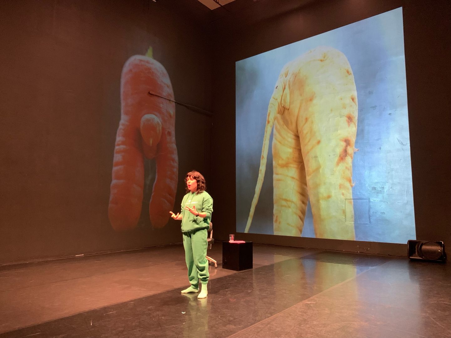 I make live performances that stretch across disciplines. I’m a writer, dance and theater maker, dancer, sometimes playwright. Lately I’ve been making short, low budget dance films. I’m very excited to share some work at the Hollywood Fringe Festival this June! I have performances June 14,15, 21, 22 & 23 at The Actors Company in West Hollywood. The piece, which is called Meeting #7, is a long solo in which I play an orientation leader welcoming the audience as if they are aliens who are immigrating to planet earth. It’s a tragedy and comedy at the same time, with big, brightly colored projections on two walls. I hope the community will come check it out and have a laugh at the expense of all the messed up things about being a human in the 2020s on earth.