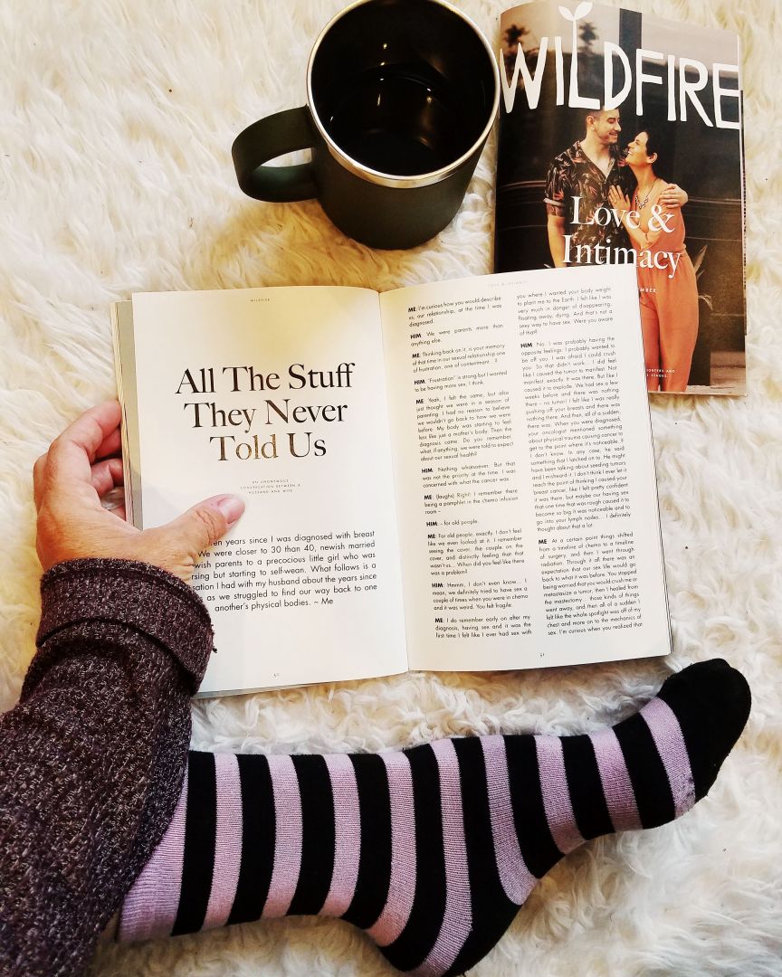 People have asked me along the way why I won’t make Wildfire for all people diagnosed with breast cancer at any age. I feel strongly that young women need resources that speak to their unique experience of being diagnosed well before menopause. This includes discussions of fertility and infertility, sex and intimacy, money and careers, body image, mental health, and more.