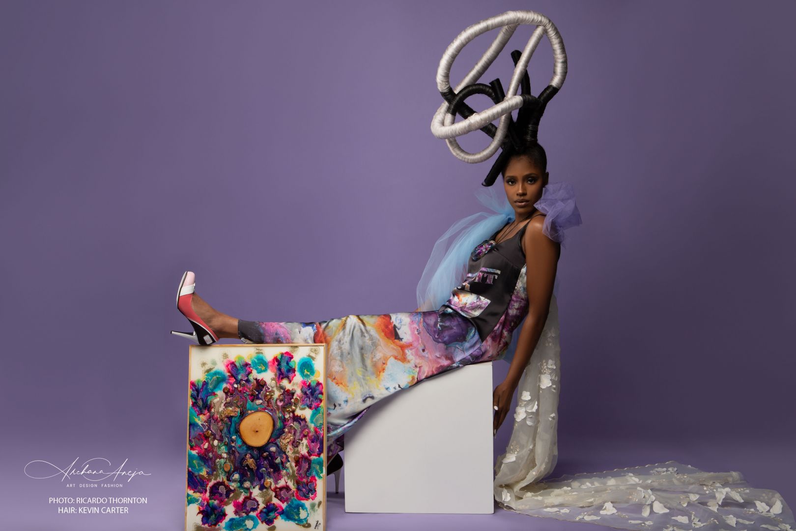 I’ve witnessed tremendous personal and creative growth and maturity, due to the pandemic and the new unpredictable world we live in. Art has become my therapy. With the unwavering support of supremely talented collaborators: Photographer Ricardo Thornton, Hair Artist Kevin Carter & Indie Fashion Boutique, the last couple of years have led to phenomenal projects and shows. My gratitude to them and the numerous models, MUAs, photographers, videographers, musicians, tailors, on demand print partners and gallery owners, who trusted and supported my vision.