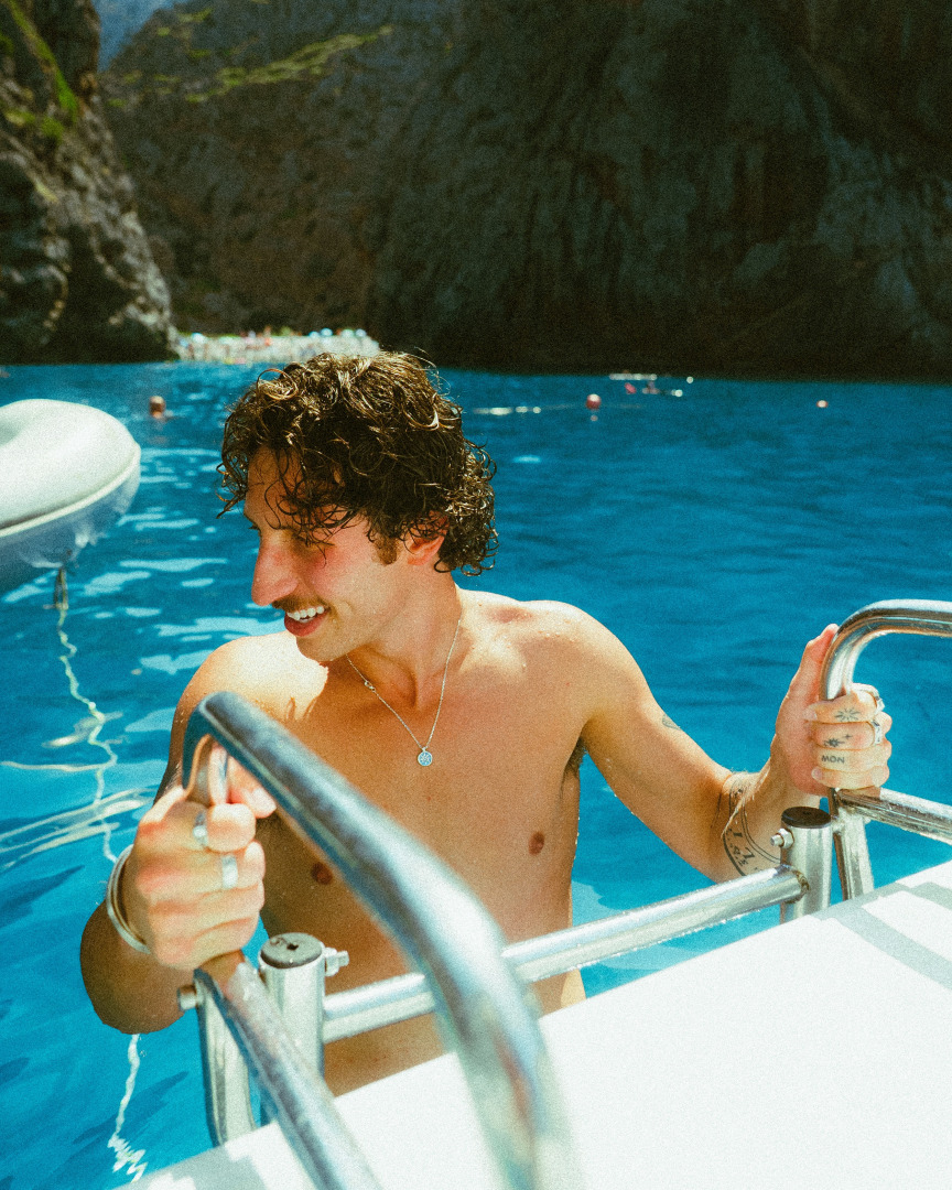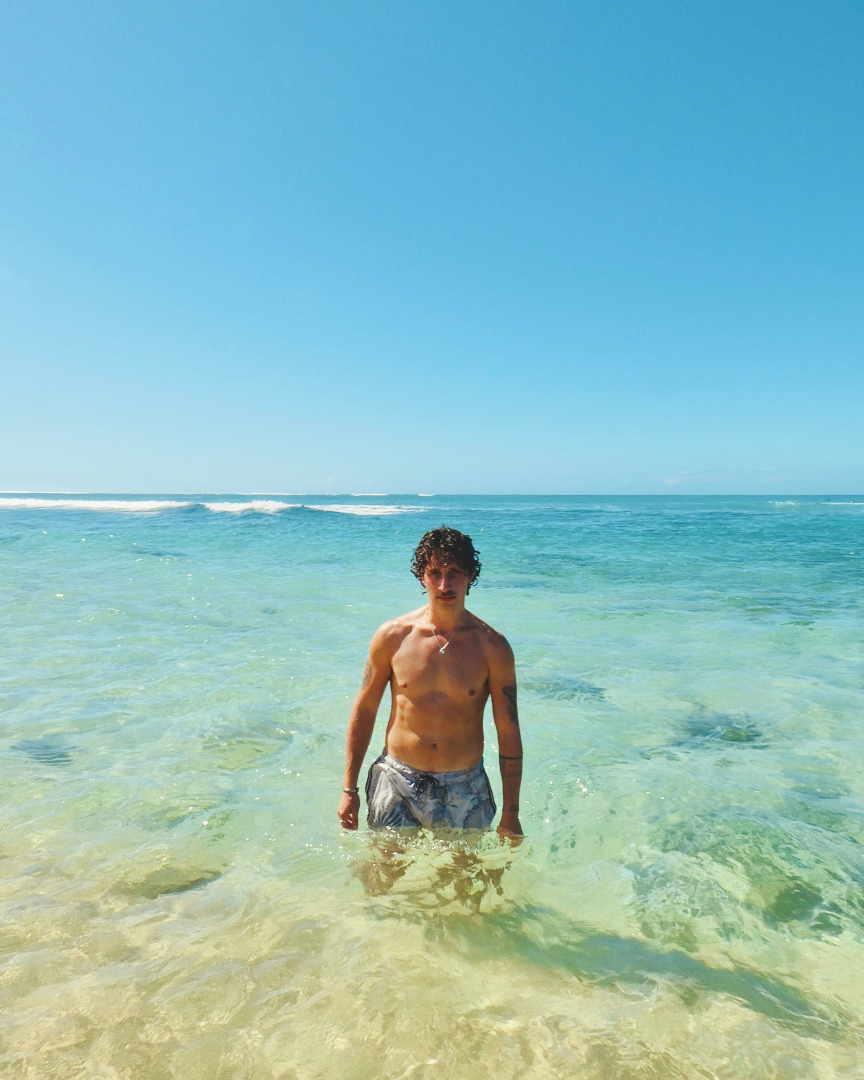 What makes me happy? Honestly, so many simple, sensory things. Sunlight on my skin. Cold fruit on the beach. Swimming in the ocean. Riding a skateboard down a long, winding hill. Cliff jumping, doing flips, blasting my favorite music with the windows down. Watching the sunset with friends and feeling completely present in the moment. I think what really makes me happy is human experience itself — being immersed in new places, new cultures, new energy. I’m happiest when I’m outside, moving, exploring, connecting. The little things mean everything to me. It’s the emotion, the connection, the shared laughter, the feeling of being fully alive. Those human moments — that’s what turns ordinary days into something unforgettable.
