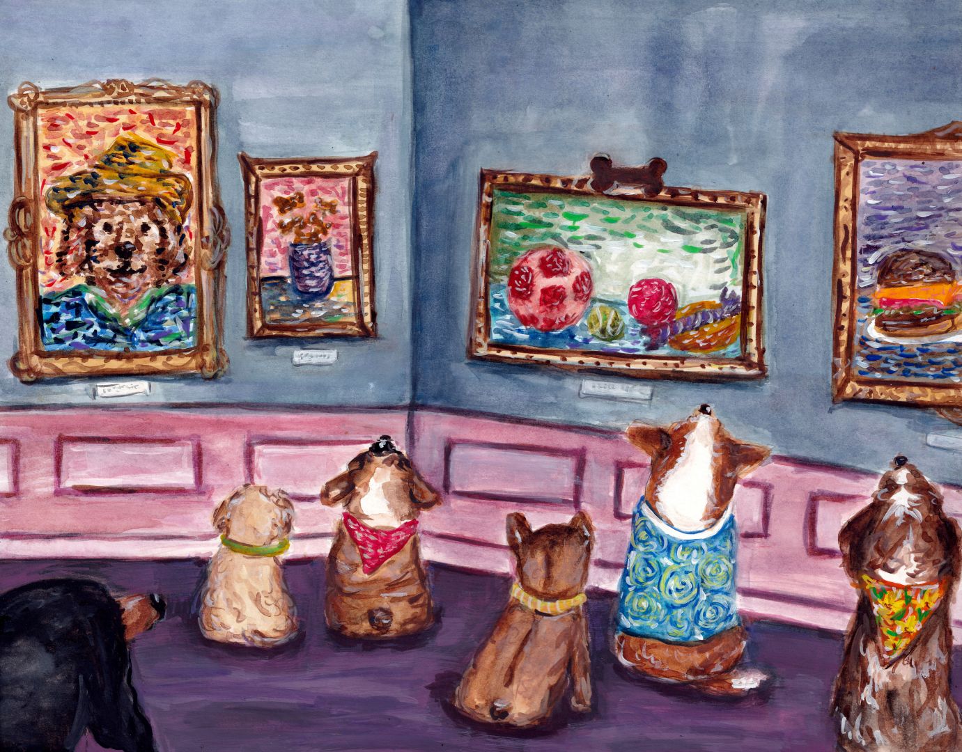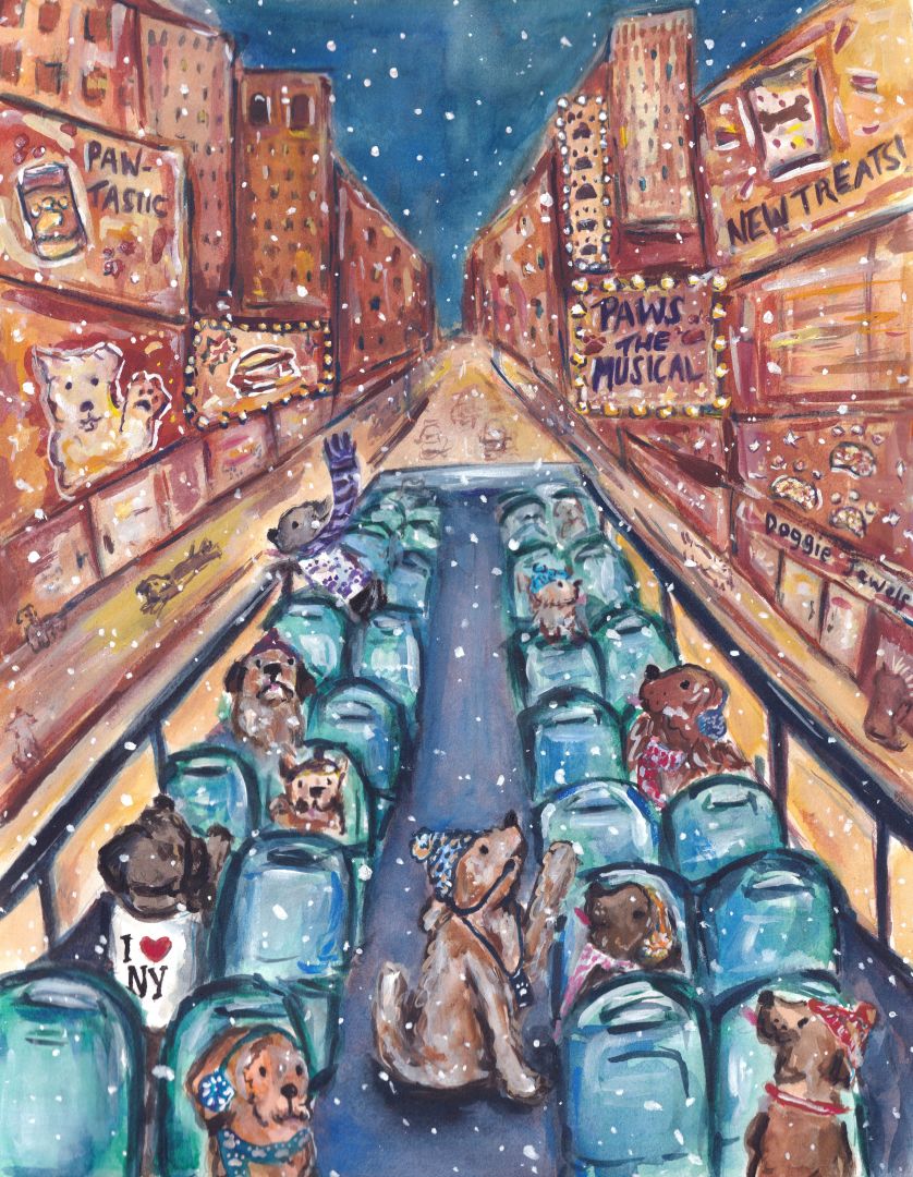 I’m an illustrator based in Staten Island, New York. I graduated in May 2023 from The School of Visual Arts in Manhattan with a BFA in Illustration. I have experience making promotional signs for businesses as well as art for special occasions. Displaying my art across social media platforms has resulted in me being commissioned to make pet portraits and even people portraits. My art has also been featured on LINK screens across NYC, which was a very proud moment for me. Another memorable moment was when I went on a cruise this past summer. I decided to bring my sketchbook and drawing supplies on board. I would wake up early and draw on the lido deck. As I would draw, many people would come up to me and praise my art. Someone suggested that I draw the cruise director and I thought it was a great idea. I spent the last few days on the cruise spending some hours in the morning drawing the cruise director. More and more people came up to me and would check back to see if I was still drawing and to see the progress I made. When I showed the cruise director the drawing he was shocked and speechless. Seeing his reaction and how grateful he was, was an unforgettable moment that brought me so much happiness. This experience was another proud moment for me and I felt appreciated for the work I made. When I first started college the art I was making was more serious and realistic. As I learned more and exposed myself to other artists, I realized that my art didn’t have to be realistic and it could be more playful. While I do like making realistic people and pet portraits, the art I love making the most are colorful, loose and creative illustrations. I work in a variety of traditional mediums, primarily gouache. My love for animals, especially dogs, is prominent in most of my art work. The world is full of so many dark and cruel things and I want my art to make people laugh, smile and put them in a good mood. I try to incorporate my child self through the expressive marks I make and the playful colors I use. My biggest dream is to illustrate/ make children’s books. While still focusing on illustration work on the side I currently work part time as an after school counselor for elementary school children. I showed them the art I’ve made and they were so excited and surprised at the work I’ve done. Seeing their reactions to my work and the praise and encouragement they give me continues to inspire me to keep doing what I’m doing and to not give up on this creative career path even though it’s not been easy. I’ve had many people tell me it would be a difficult career path with low income and it would be a big mistake. While it is challenging and discouraging sometimes, especially after recently graduating, for me, doing what makes me happy especially in a career aspect is the most important thing.