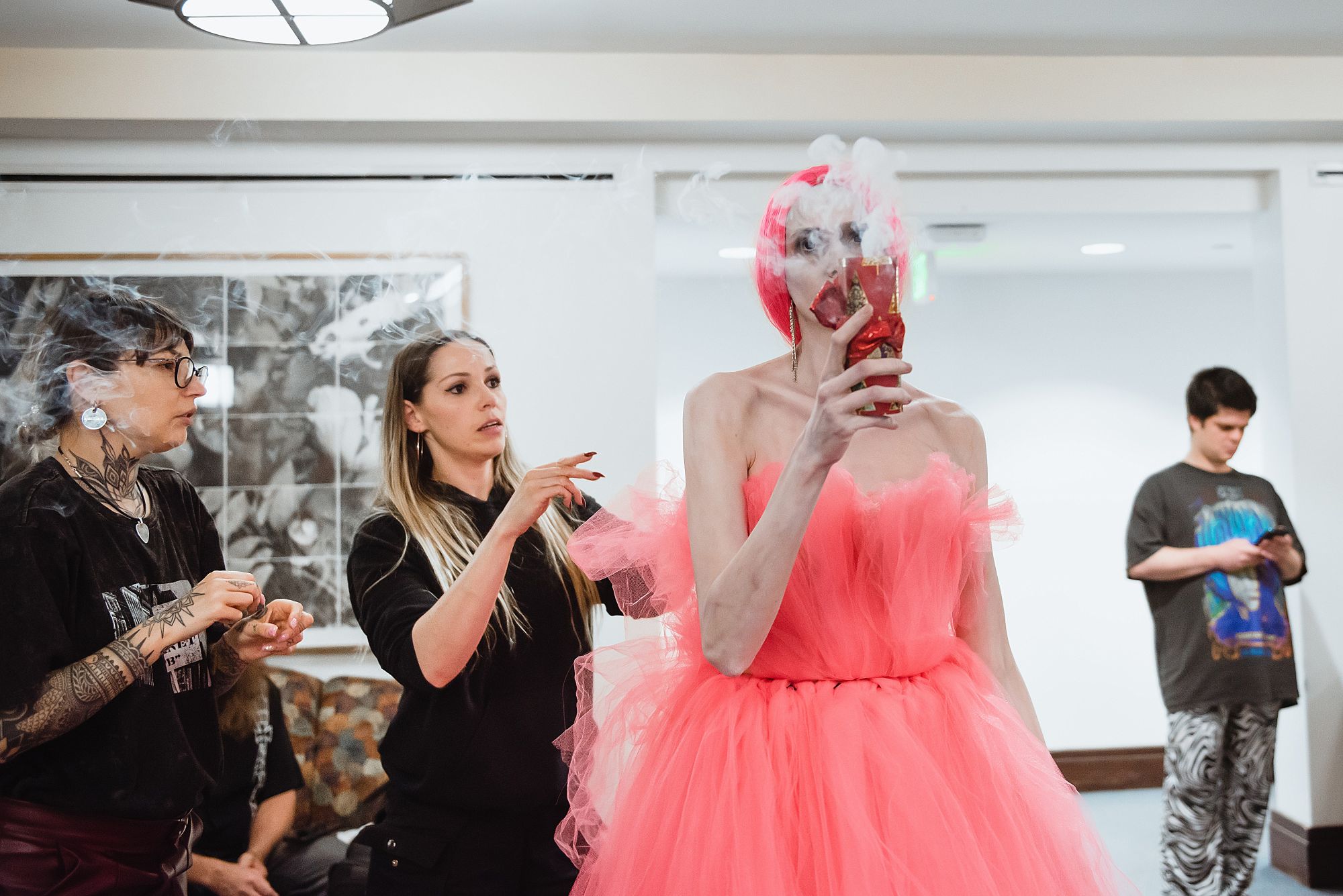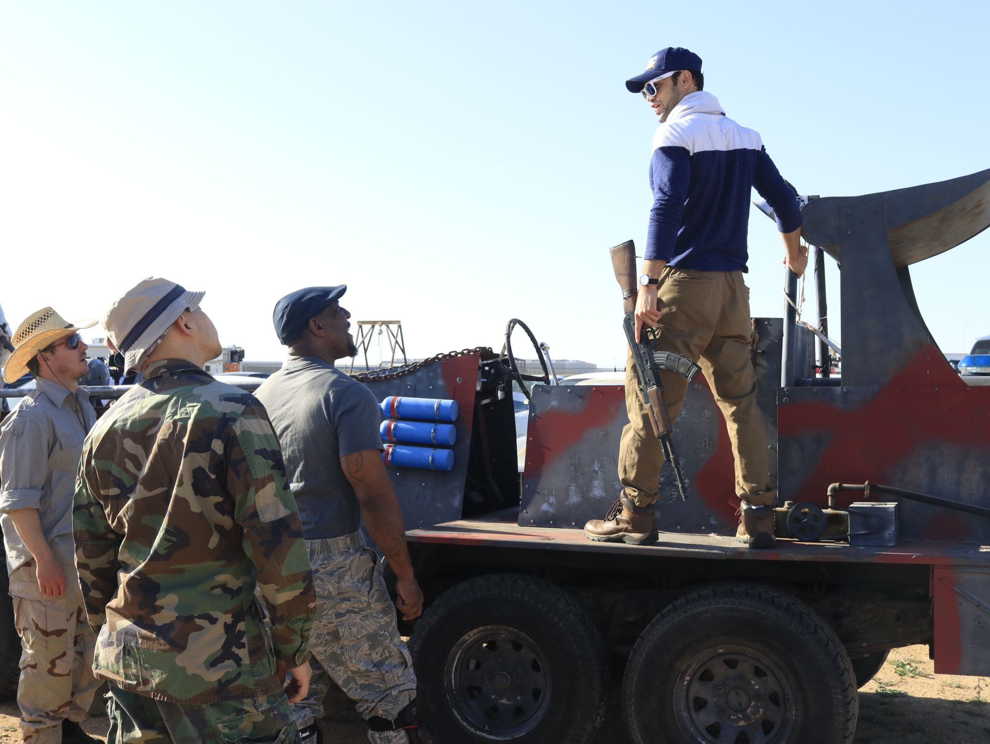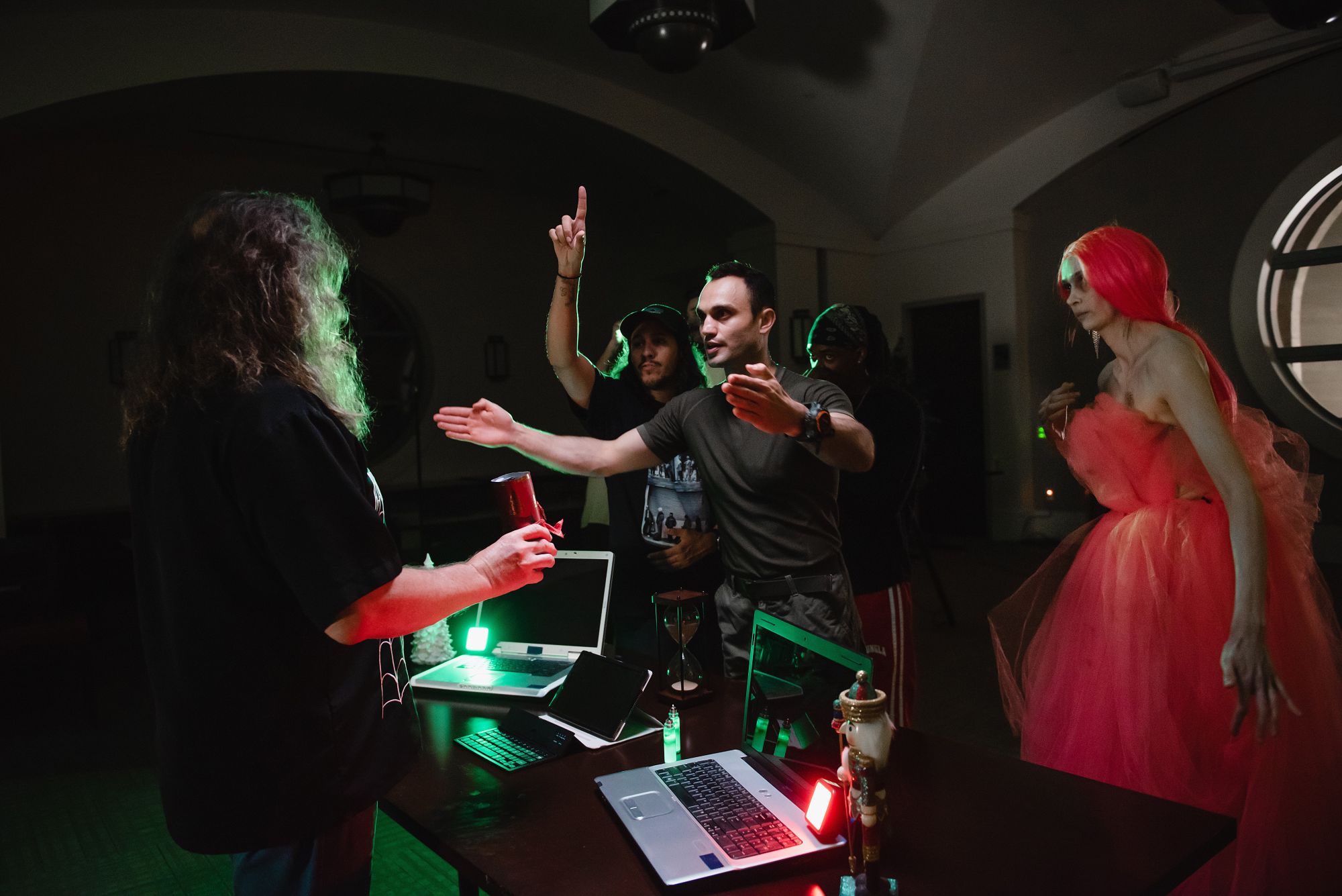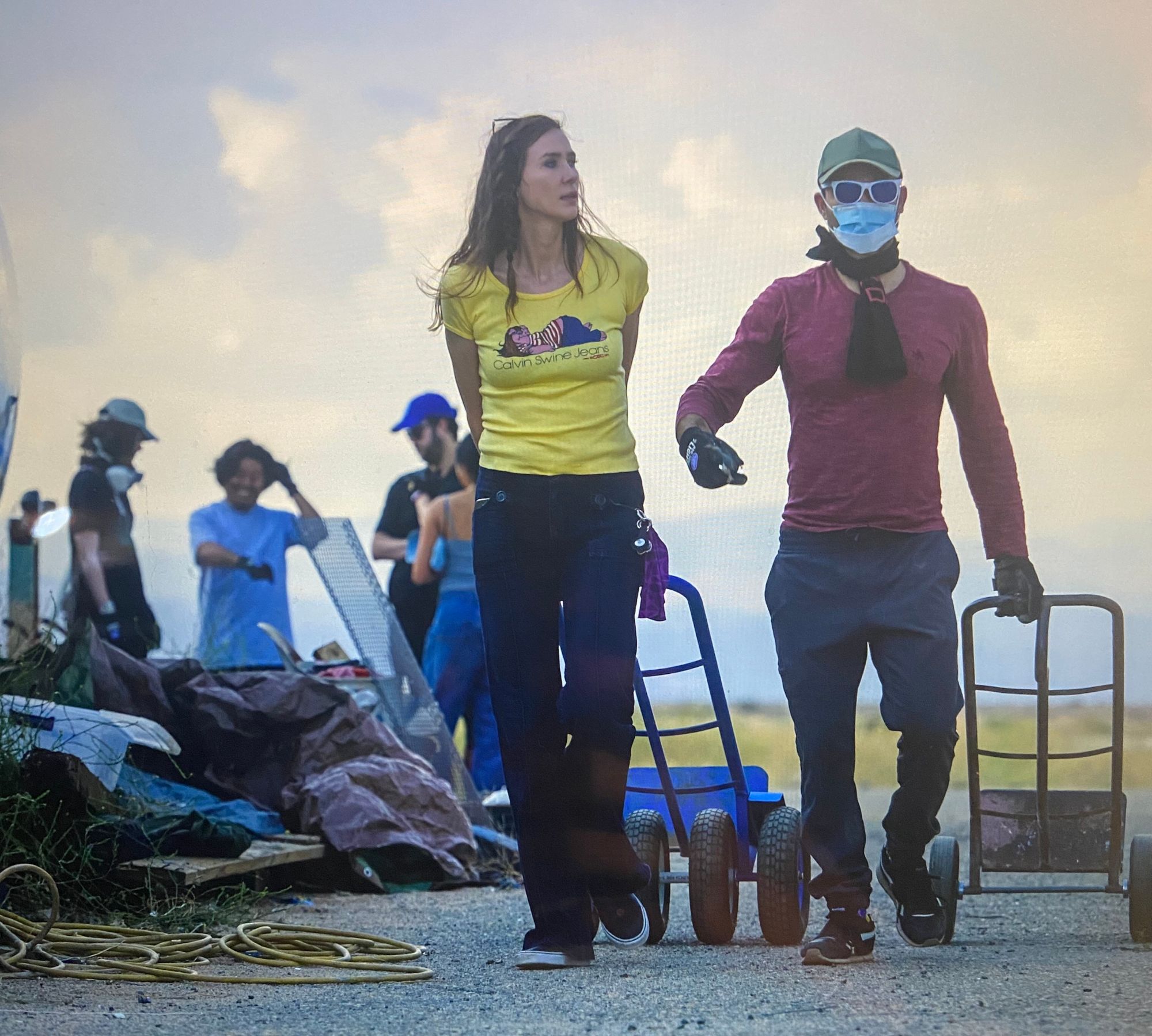 The pictures with zombies were taken by Svitlana Soroka on the set of the action/comedy/horror that our production company has been developing titled Fortune Zombies: Vol. Christmas The pictures on set with the prop AK 47 and dragging the cart were taken by Romsha Golos. The other pictures were taken by a cinematographer Andreas Burgess on the set of our romantic drama TASMANIA written and directed by Austin Alward. A ballroom dance competition picture with my student was taken by a kind stranger who also attended the competition. And the wrap picture by the plane with our cast and crew was taken by me.