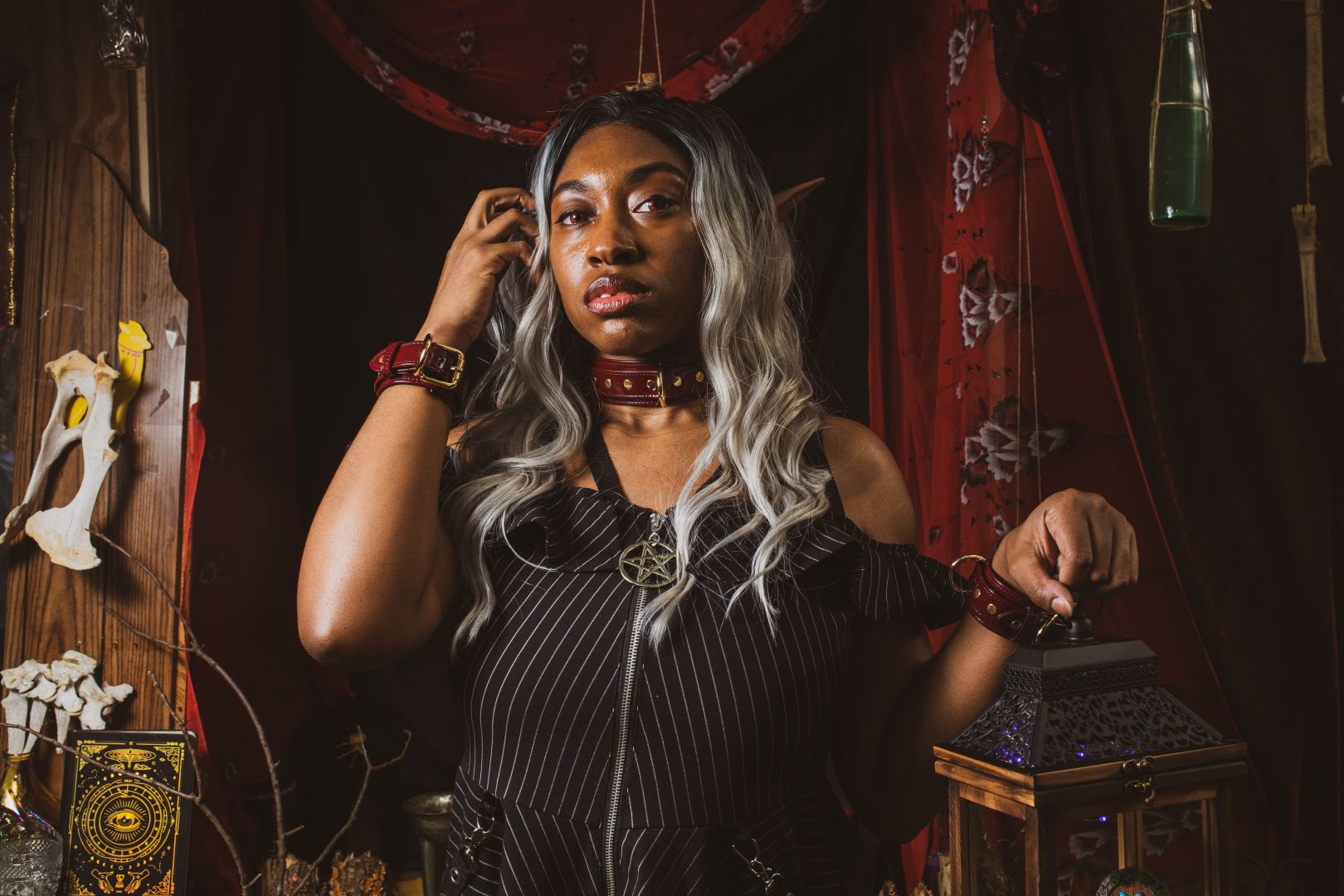 Maleficent cosplay (Black/green) Photographer AshB Collage of Art: Artist credit to Anna/Middnite and Jawara Blake Purple dress: Photographer Dancing Squirrel Photography Silver haired Elf: Photographer HeadAboveHeart