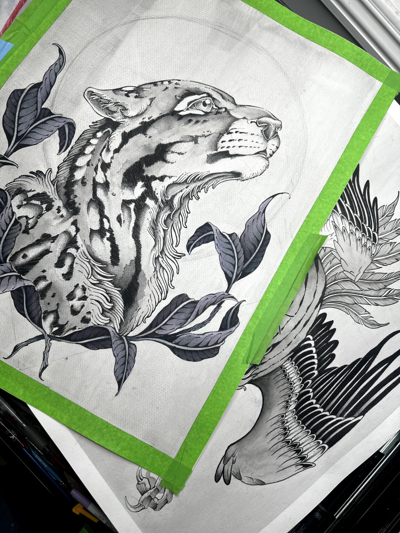 I specialize in etching-style, illustrative tattoos—but beyond technique, my focus is on connection. I don’t just want to leave a mark on your skin; I want to hold space for something meaningful, something personal.
