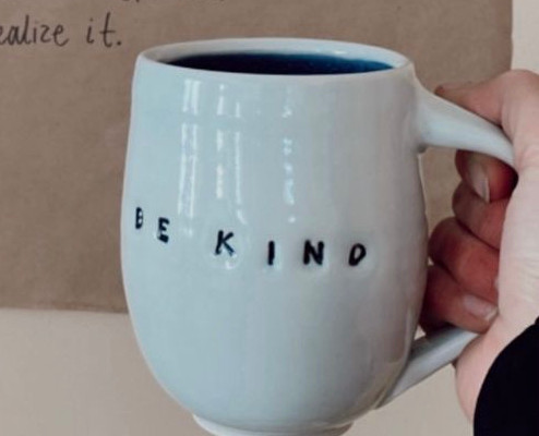I often incorporate words and quotations into my pottery, and the “be kind” mugs and touchstones in particular resonate with my customers. When I see how customers and clients connect with the be kind messages on my pottery I understand the link between consideration for others and the deep meaning of the words “be kind”. It’s how we should treat everyone.