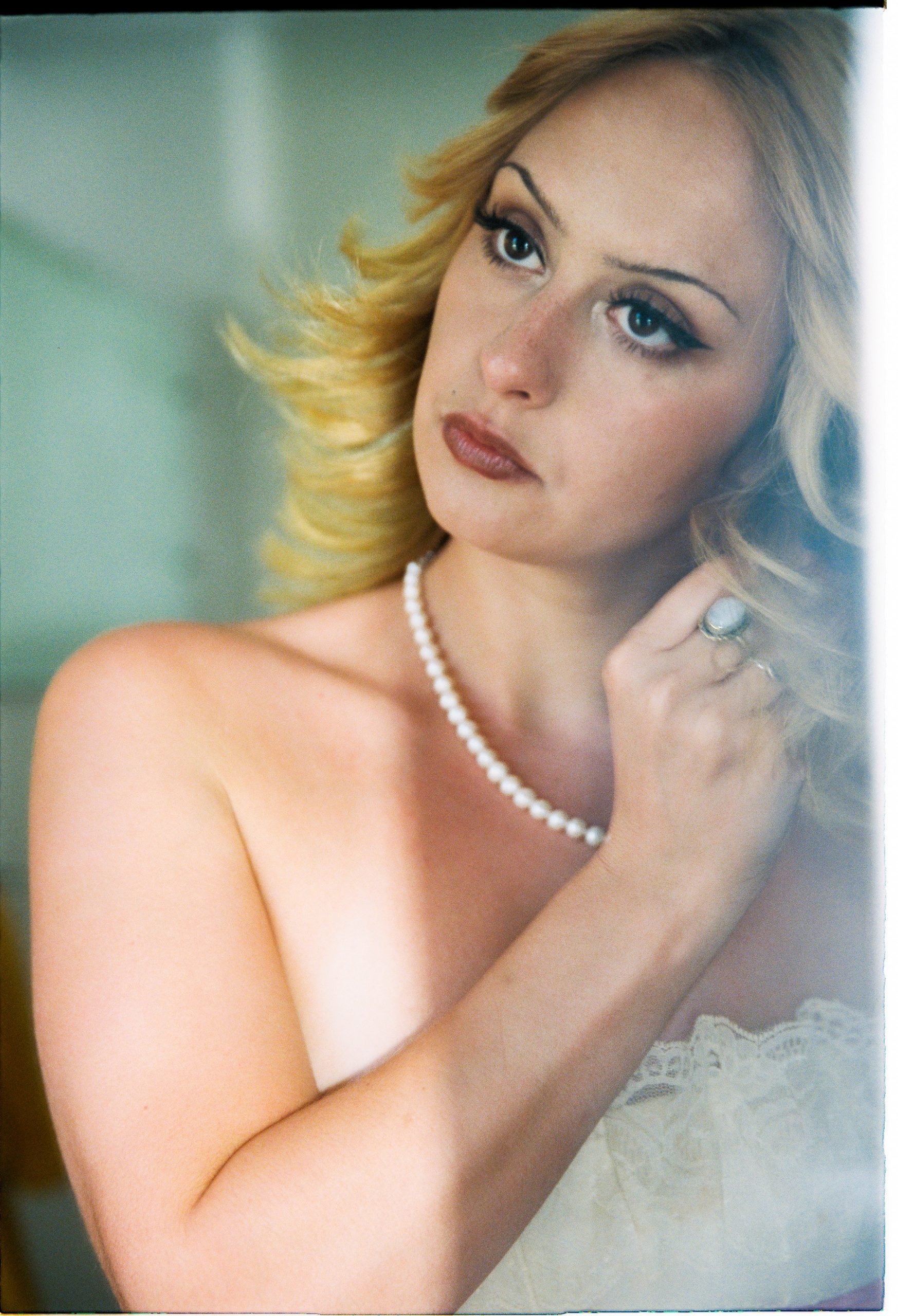 Ragan Henderson (photo in mirror with pearl necklace)