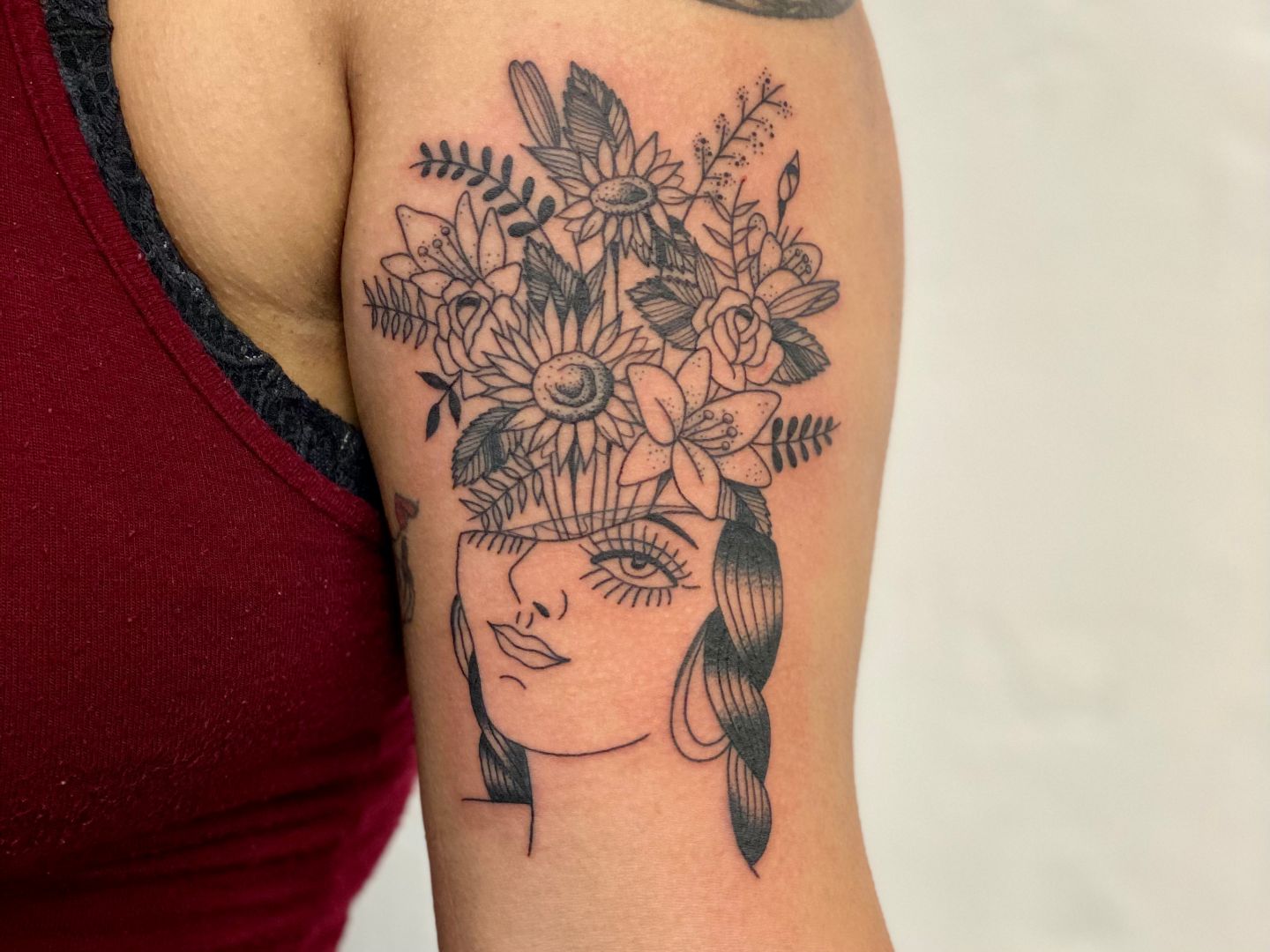 Well my art is based around classic American tattoo imagery but I also love tattooing all black tattoo designs with two line weights, a thick and a thin. The classics will always be my first choice of style, there’s just nothing tougher or more appealing to me then an old badge tattoo on the top of the forearm. The other style I do I guess you could call it black traditional but technically with the two line weights, extra details and more out of the box drawings it’s new traditional. As far as getting to where I am and where I want to go it’s not easy but I wouldn’t say it’s hard either. I guess I just love tattooing so much that working myself to the bone is the same as spending life of vacation. Now don’t get me wrong when that client comes in that didn’t heal right or your having a Karen treat there tattoo design like a build a bear it sucks but hey it’s worth it.
