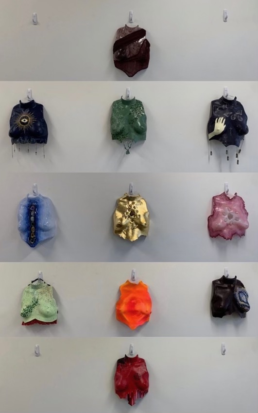 I work primarily in painting and more recently sculpture. I picked up sculpture last year and am totally in love with it. I’m really interested in the human form; exploring mainly my own body through my work. I deal with some body dysmorphia issues and I’ve found it quite intriguing to see how these preconceived notions I have of my own body translate to my work. For example, I made a series of breastplates formed from my own body. Through these pieces, I had to somewhat objectify myself to work but the outcome of the pieces I found beautiful; proud and excited to wear them.