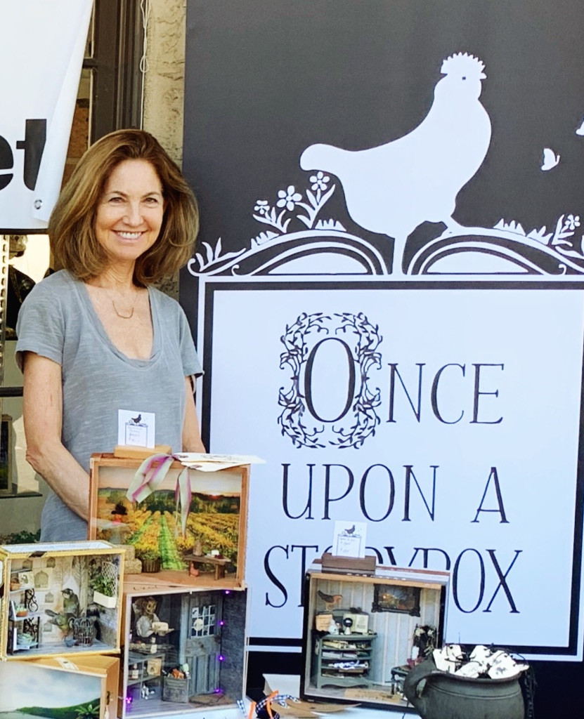 Once Upon a Storybox was born out of my love for miniatures, and love of animals. When I retired and moved to the country 5 years ago the first thing we built was a chicken coop and I selected breeds according to the color eggs they laid. I got the idea of creating miniature coops in cigar boxes, which have morphed into chickens in all different environments, often doing “people” things. As a little girl I played with dollhouses all day; in my stores, my favorite parts were merchandising the displays and composing the newsletters. Now, I love creating mini scenes as I did when I was small. All the components of what I’ve done throughout my life have contributed in part to what I do today. The design, the marketing, the graphics, the art, the stories. WHAT I’VE LEARNED . . . I’ve made mistakes and have about a couple dozen or so designs that my children will probably have to dispose of one day! Because I made what I loved, but not necessarily what would sell. So by trial and error, I’ve found what works. And now I try to design boxes that cater to both. The other thing – there is only one box I make consistently as it is quintessentially Ojai and sells over and over (it is of our pink moment with orange trees). But any other time I’ve re-made a box that sold fast, the second one just sat. So now I vow never to repeat a design exactly. That also ensures that someone is getting something unique that will never be made again. My favorite is creating custom designs to commemorate a special occasion. Almost anything can be re-created in a cigar box!