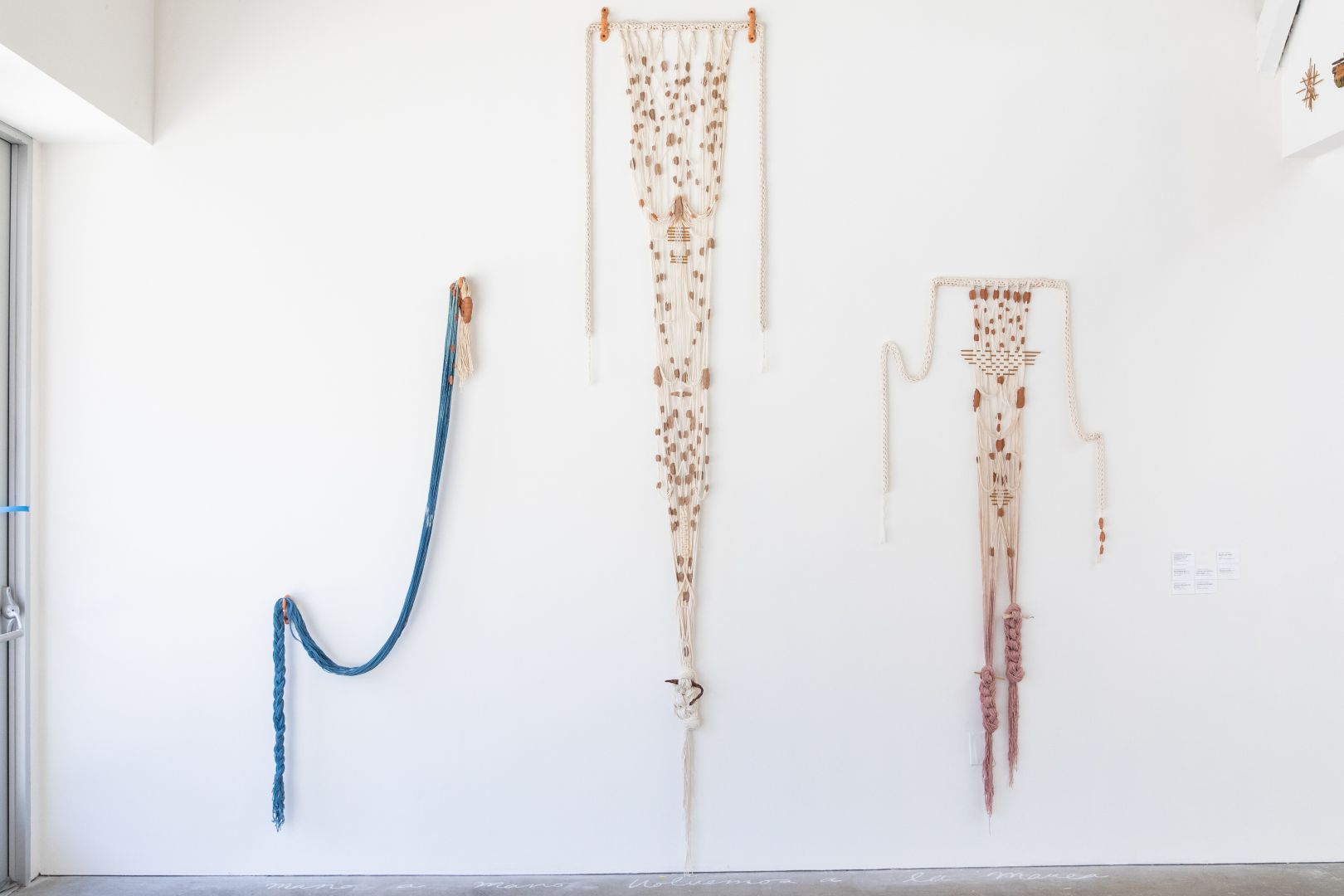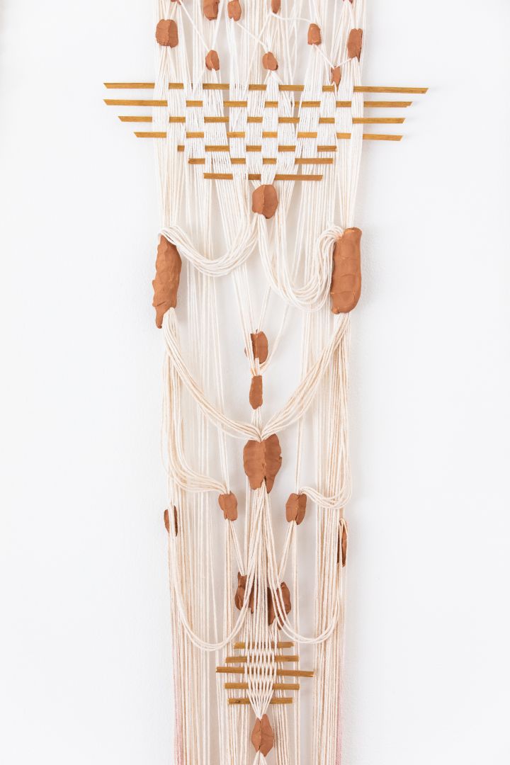 The work I create is about the meeting of the body and material. My practice explores ideas surrounding the history of altar-making and what constitutes an altar. My work explores a reimagining of what an altar can become to protect us, heal us, and help us remember or move on in the current state of the world. I focus on collectiveness, parts of different things and people, put together to create a new form of altar. I’m interested in combining materials, such as textiles and clay with found or foraged materials to create and discuss the body, altars, and language. My work focuses heavily on traditional craft processes such as backstrap weaving, basket weaving, natural dyeing, hand building in clay, and candle making. I use these processes to challenge the idea of craft practices in contemporary spaces. There is also a continuous connection to language and its duality throughout my work. Switching between Spanish and English, the idea that language can hold so much power in the spiritual and our everyday use of it.