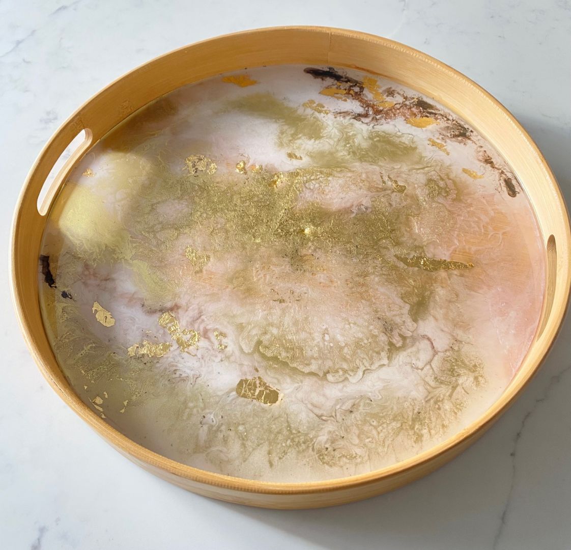 I have a background in photography and have always had an artistic eye. My mother is an artist and interior designer so I have been around art/color/design my entire life. Having said that, I still work extremely hard to achieve the look I desire. You have to have extreme discipline as a one-person small business owner. I am self taught and my work has grown so much in the past two years. I spend a lot of time learning about different tools, mediums, and art supplies. How pigments work, and how heat or angles affect the resin. There is a lot of science involved in art, especially with resin and the learning curve can be steep. I work hard and I like a challenge. Resin is definitely a challenging medium and I wanted to master it. There is ALWAYS more to learn though. Anyone that says they have got it all figured out is lying to you. Nobody has anything all figured out 100% of the time. Life is about evolving. As a person, at your craft, your art, your business, your relationships. All of it. We continue to grow and change.