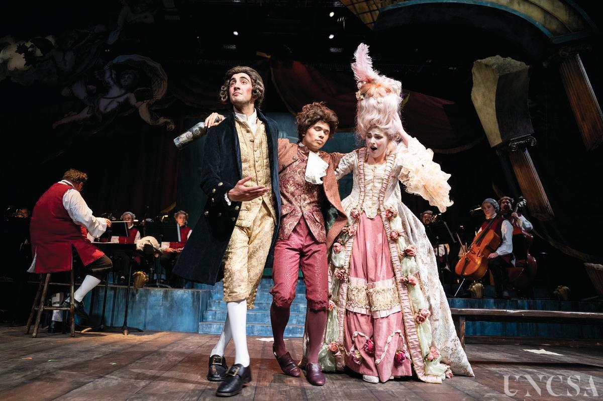 I started working at our local amusement park in their costume shop and began learning the basics of how a professional production runs. I performed several different positions such as a Dresser, Sewing Attendant, Wardrobe Manager for the Grand Carnivale Parade, and designed select pieces and characters for the Grand Carnivale and Halloween Haunt celebrations over the course of four years. During this time, I was able to research colleges, and found my dream school – University of North Carolina School of the Arts (UNCSA). At the time, I had such low confidence in myself that I put off even applying for months, convinced I wouldn’t get in. After some encouragement from friends and family, I applied. To my complete surprise, I was accepted. I spent my four years taking advantage of every opportunity I could to learn and grow. One of my favorites being the opportunity to design a period piece, a stage production of Peter Schaffer’s Amadeus.