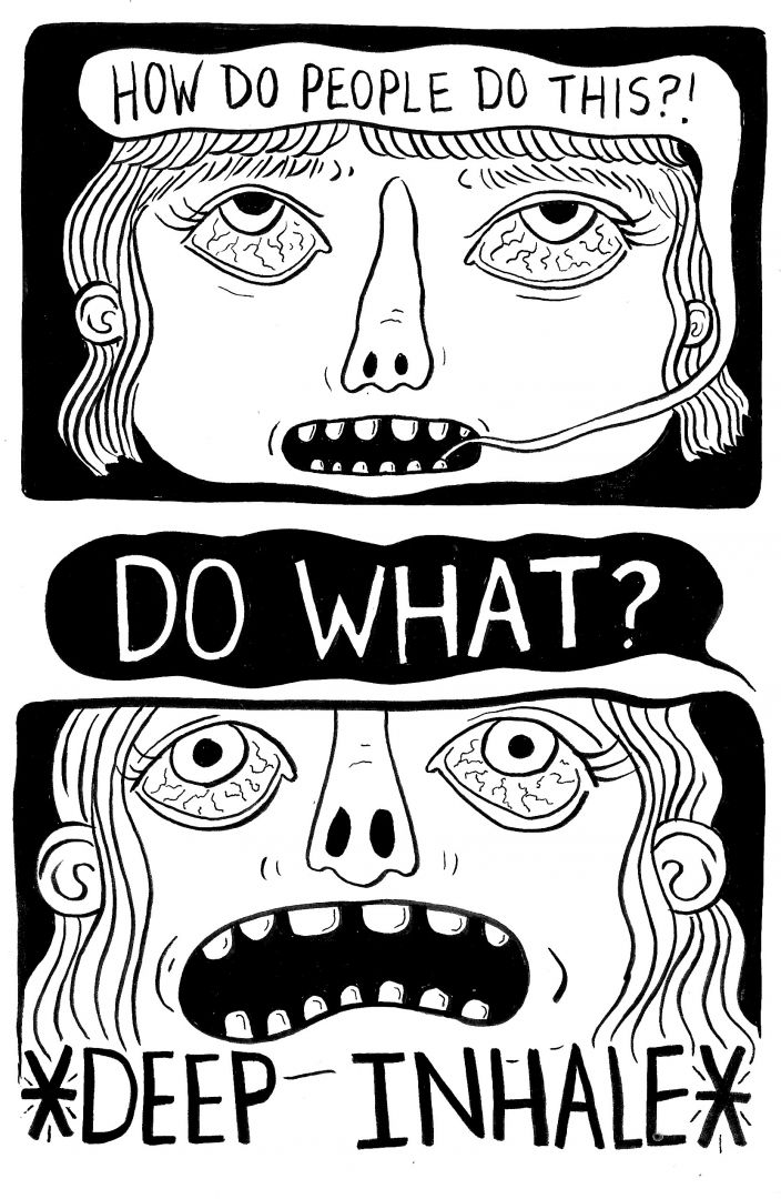 My art tends to depict some dramatized, sort-of-funny exaggeration of emotions that we all deal with on the regular. As humans we all experience grief, despair, joy, fear, exhilaration and boredom (just to name a few) and we all express it in our own ways. I like to push the levels way up with the expressions I draw and create something that everyone can look at and think “hah! yeah I’ve felt that way before”.