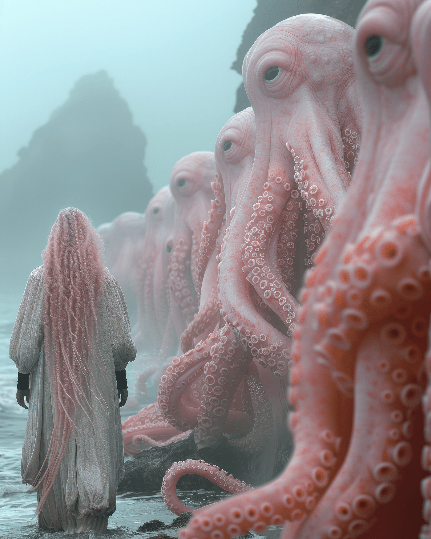 Storytelling has always been at the core of my work. I aim to create images and build atmospheres, worlds, and stories that feel alive. My art lives in the space between the beautiful and the eerie, the strange and the familiar—where vastly different beings coexist in the same world. To do this, I blend generative AI, particularly Midjourney with my background in graphic design and photography to create imagery that once existed only in my imagination.