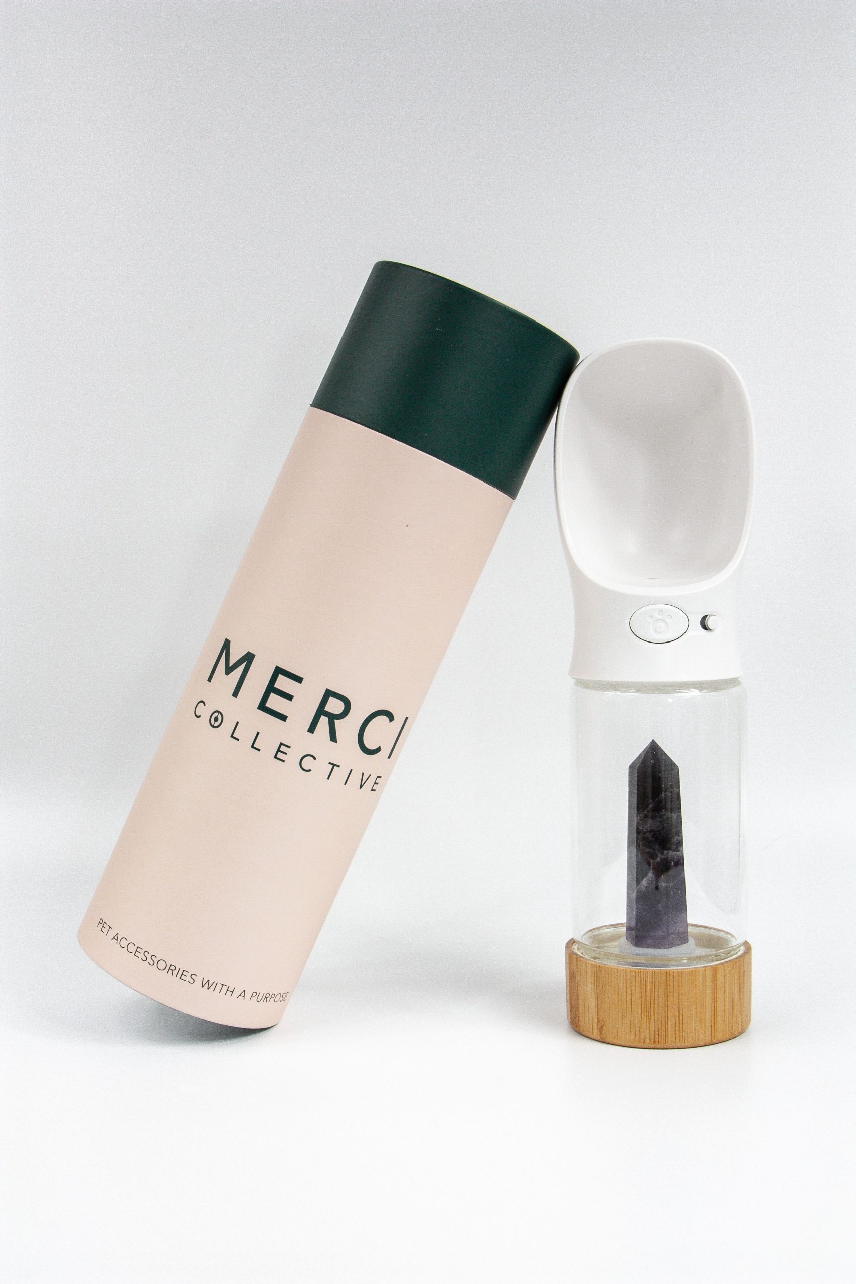 What sets Merci Collective apart is our holistic approach to pet wellness, combined with luxurious, high-quality products. We incorporate healing crystals, like Rose Quartz and Black Obsidian, into our products to help support pets’ emotional and physical well-being. Our crystal-infused water bottles, for example, are designed to elevate pets’ hydration routines while also providing calming benefits. We’re also incredibly committed to sustainability, and all our products are vegan, cruelty-free, and eco-friendly.