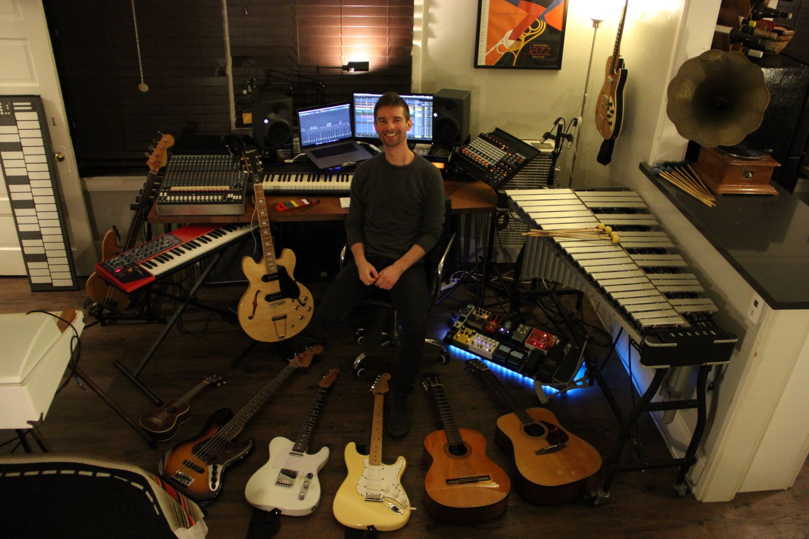 One thing that often comes up when I tell people about my music is that my first instrument is extremely unique. The vibraphone is a six foot long metal marimba style instrument played with four mallets, a sustain pedal and capable of percussive intensity of open etherial chords. Many people have heard it on recordings, particularly in jazz and classical music but very few are familiar with the instrument. Having played the vibes since I was a kid, I always had this unique sound and element to my musical identity but I also felt like the instrument was limiting at times because it’s so niche. In middle and high school I started experimenting on guitar, bass and piano as a way to expand my sonic universe. This spirit of exploration continued through high school and college where I was fortunate to be surrounded by great young musicians who encouraged a culture of original compositions and improvisation. These years of writing music to challenge myself and my friends as a student opened up my ears to new textures, cultures, grooves and emotions in music. As a professional, there was a harsh awaking that the real world isn’t as easy to make a living as a modern jazz vibraphonist/composer. At this point I also wanted to explore the possibilities of using the computer as a compositional and sound design tool. Though I never intended, now music software and production has led me to be a professional producer for popular music, electronic music and film scores. While I’ll always love performing and improvising, I love to see how the spirit of curiosity can lead to a multi-faceted career journey. Excited to see what’s next!