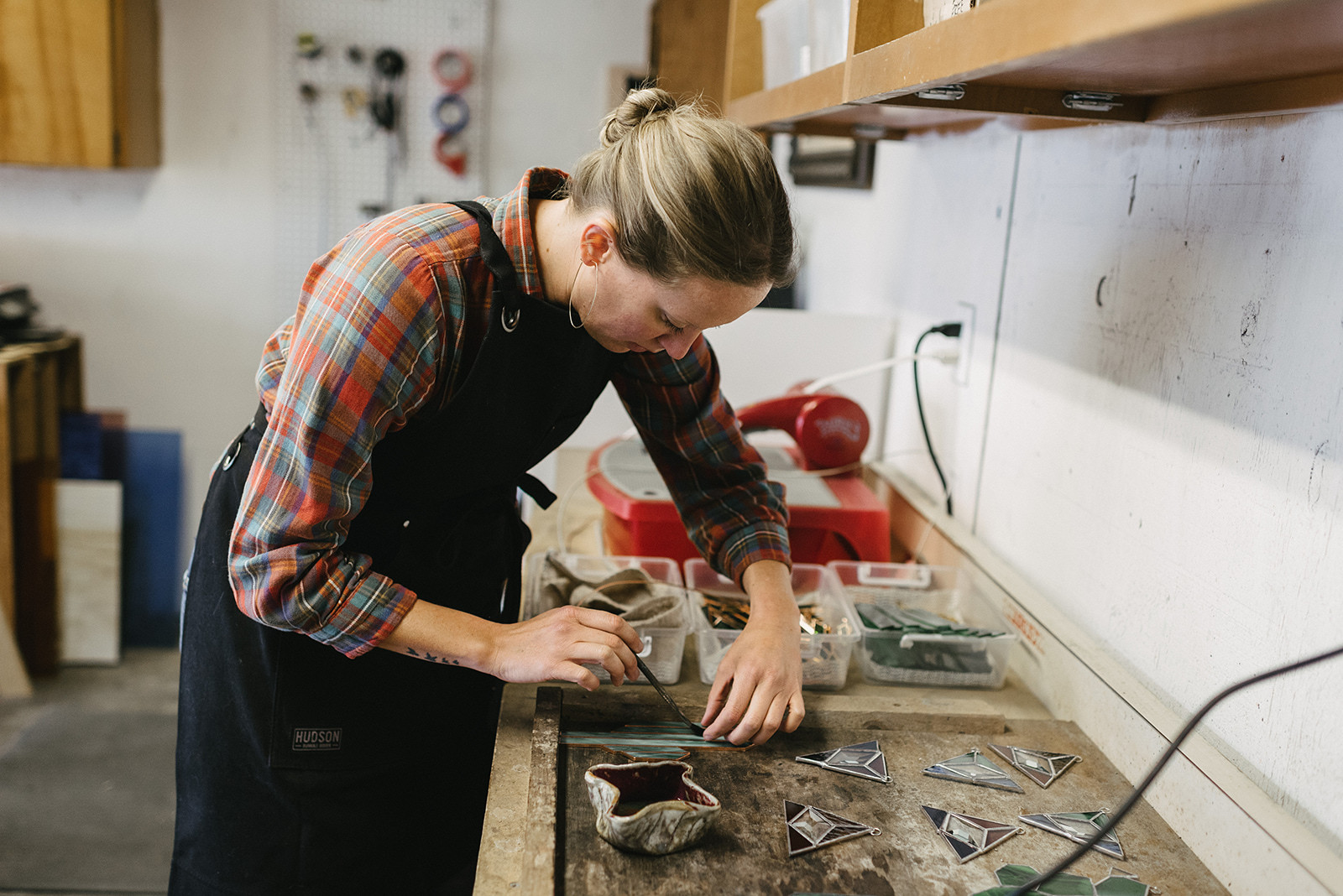 Photos of me in the studio: Jacki Potorke. Photos of stained glass: Chelsea Brewer