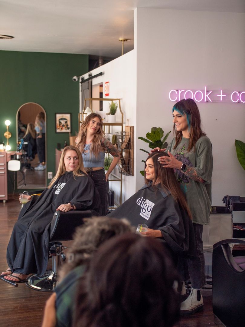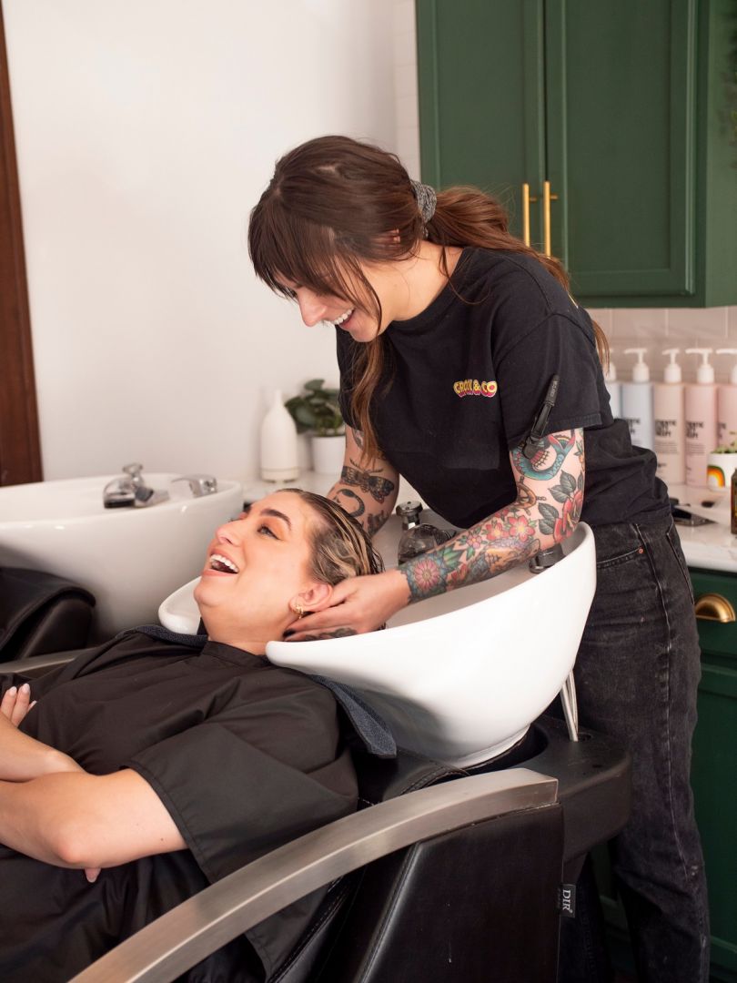 I worked at a couple of different places after becoming licensed as a hairdresser and I never felt psychologically safe or comfortable. I was struggling to find a space that aligned with my values and felt welcoming and inclusive to my guests. I consistently got feedback from my guests that they felt intimidated or nervous or judged and that’s the exact opposite of what I’m trying to create. I honestly never wanted to be a salon owner. I battle with anxiety and owning a salon is very anxiety-inducing! Managing people is very anxiety-inducing; however, the idea of creating a safe space that aligned with my morals and values and made my clients feel welcomed and appreciated was worth all the stress. Opening my own salon was the best decision I ever made. We have a team of mental health informed, inclusive and kind hairdressers and a clientele that matches our energy. Everyday coming to work feels safe and secure, and we leave the salon at night feeling fulfilled and happy and I genuinely can’t think of a better way to spend the majority of my life.