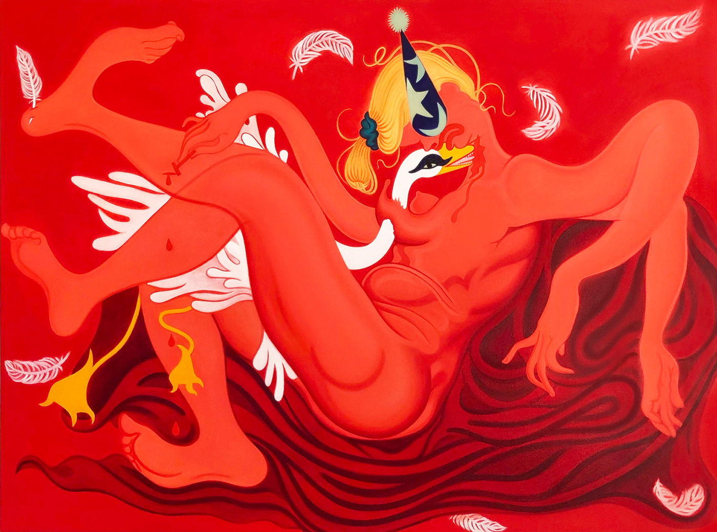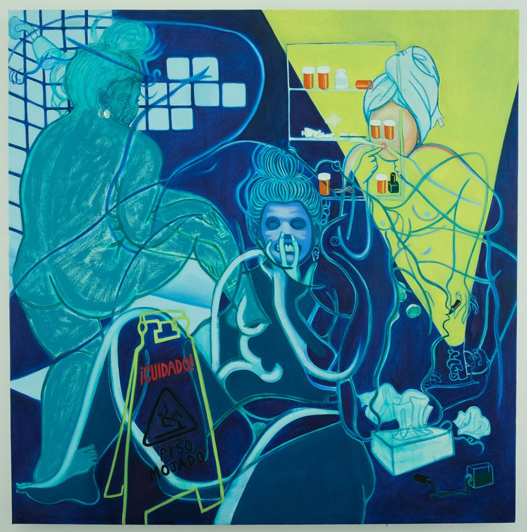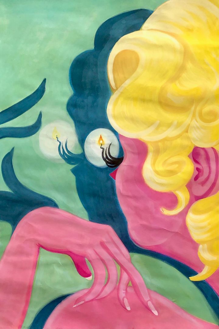 Though my work is very self-referential, I am also investigating themes, genres and communities with which I identify. The figures in my work are an amalgam of myself, film ingenues and reclining female nudes throughout the cannon of art and media. Using this figure, I create scenes about loss, unease and sickness. Oddly enough, I was developing these motifs prior to the pandemic, but relate to the current era in ways I had never imagined.