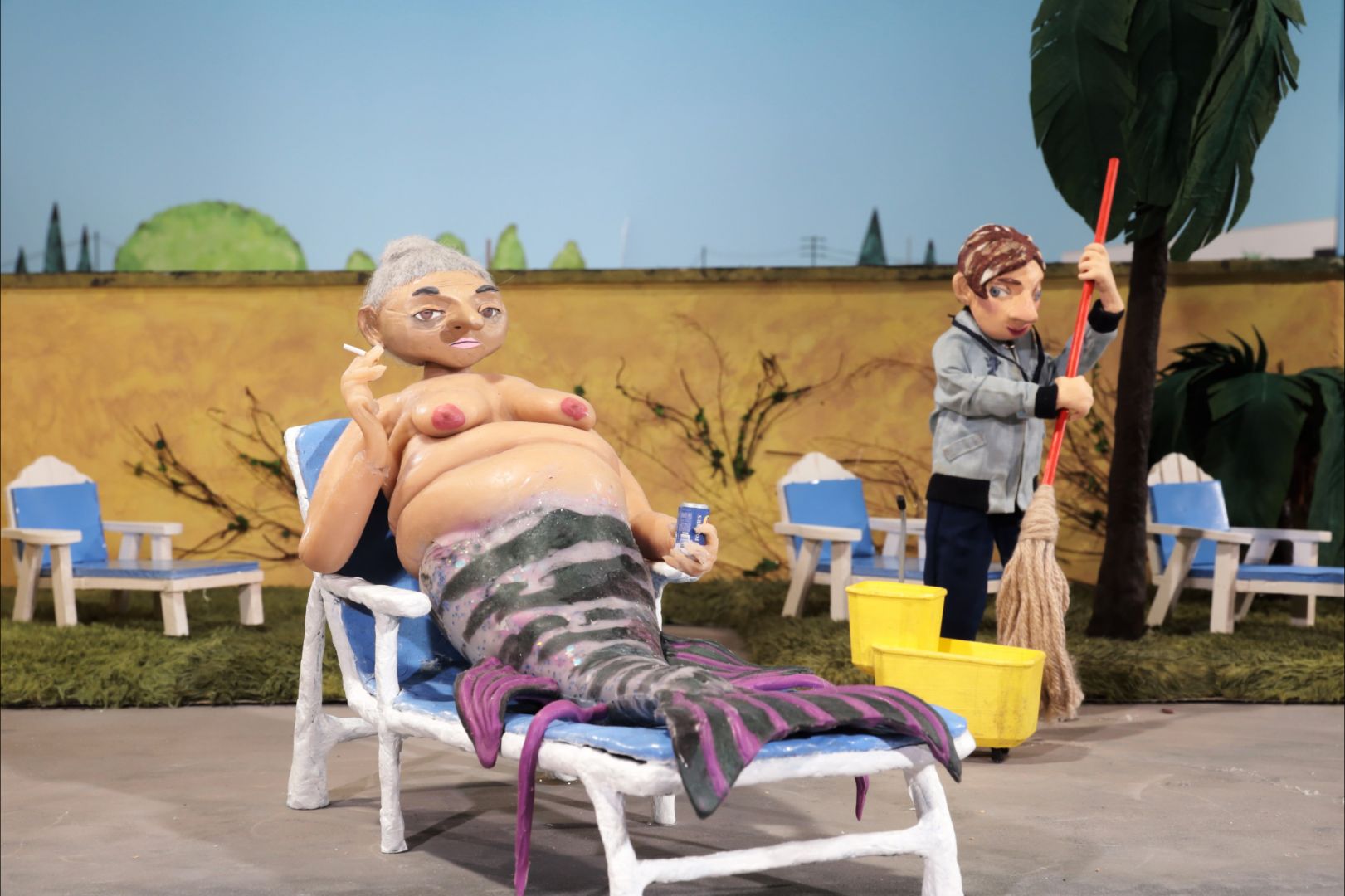 I have worked on this huge project that I’m super excited about, that after almost two years is about to come to an end! I can’t believe it, because it’s been such a big part of my life for such a long time. It’s a short film called Sea Angels made in stop motion and it’s a mockumentary about mermaids living in a pool in LA. Because of pollution the mermaids had to come up to land to seek help from humans. They are not mystical creatures at all but highly intelligent and humanoid beings. They get food and safety in a pool that gets the name Sea Angels. In exchange the Sea Angels corporation transforms into a Sea World-like theme park where humans come to be entertained by mermaids. The film deals with subjects like exploitation and environmental destruction.