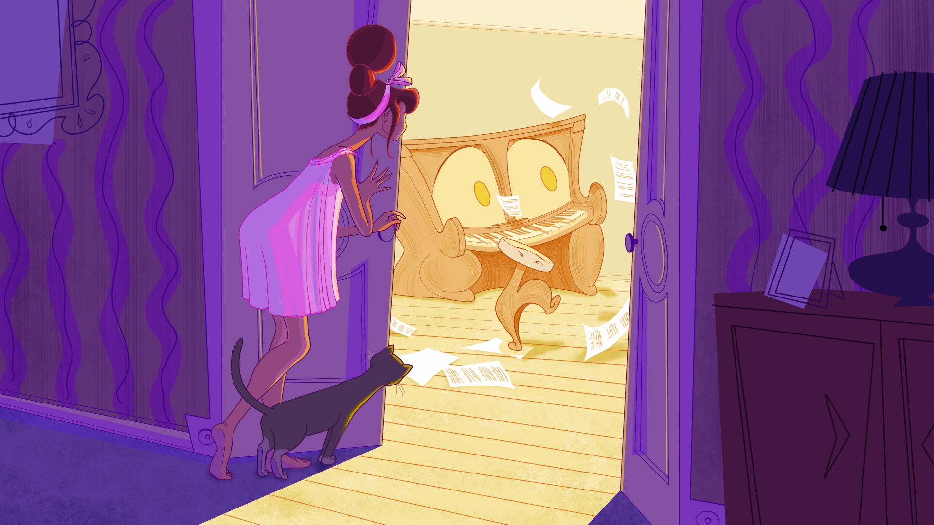 Regarding art for animation, I would say one thing that outsiders are probably unaware of is that you have to know how to draw and paint realistically: “the real.” It’s important to learn this way first before diving into animated styles, and then you must continue practicing “the real.” Such as going to figure drawing workshops, painting from observation and studying light, shadow, and times of day and how that affects color temperature. Knowing “the real” helps you create believable fictional worlds.