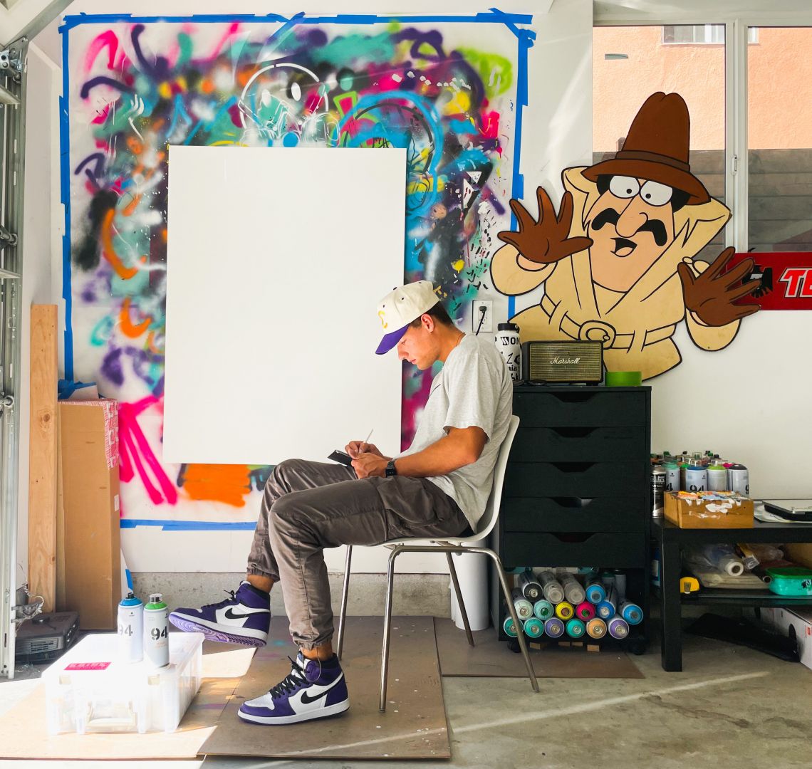 I’ve taught myself a lot over the past few years. When I was in high school, I remember getting my first laptop, and I really wanted to get into graphic design, but had no idea where to start. There was this illustrator I followed on Instagram (@jordandebney), and I would watch these Photoshop time lapses he would post of his work. I was super envious of his style. So I just emailed him. He was really cool, and would reply to all these questions I had, telling me what tools to get, what videos to watch, everything. Eventually I left him alone, went to college, and got better at the graphic design. That lead to making myself posters for my dorm room, to making designs for others, to translating that to paint. I was literally painting flat on a table in my friends backyard for almost a year, just learning what worked what didn’t. It was definitely not easy, but even when it was hard, it’s what I loved doing, so I had no problem putting in that work. If I’m excited enough to turn an idea in my head into something tangible, as long I’ve got a playlist running, I could focus on that project for 10+ hours. I’ve seen some really exciting success over the past few years, and some really frustrating failure as well. I think that success all comes from staying curious, passionate, and constantly working. Look up to your role models, and do what they did. Figure out who you are, and add individuality into how you tell that story. Ask people questions, it can only help. I’ve gotten a lot better at what I do primarily from just being consistent. Painting things I’m into allows me to sit at a canvas for hours on end, because I can’t wait to see that final product. I make sure I’m always working on something, that can get me to that next step, and with that, I know it’s only up from here.
