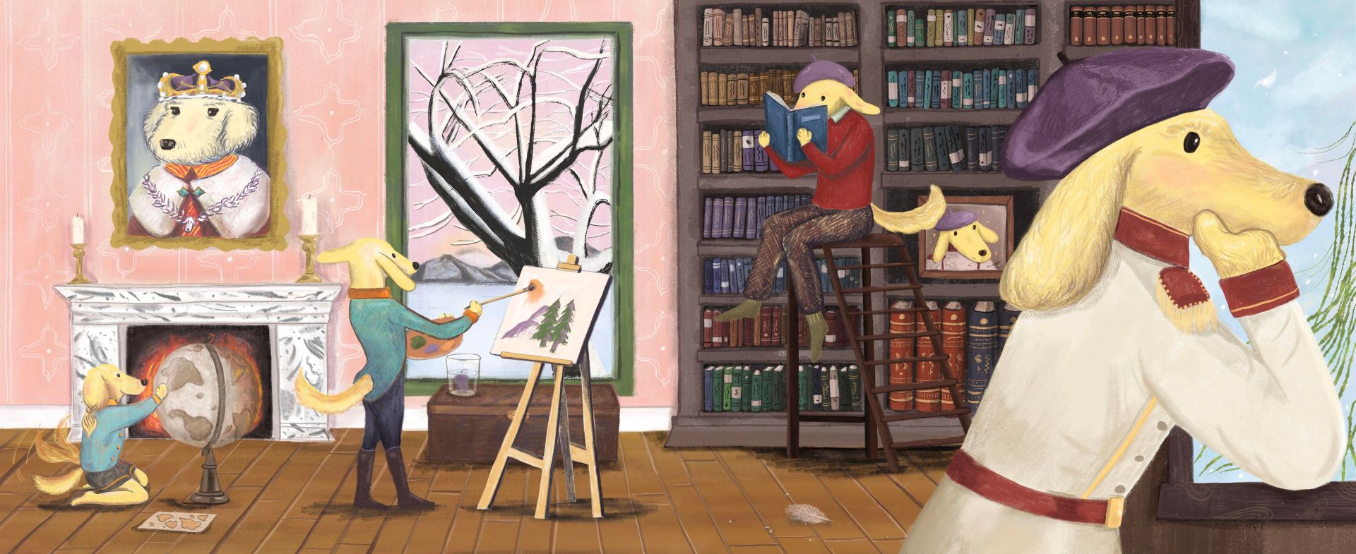 Although I am always looking forward to expanding the range of my work, a sense of naïve, a dreamy but vibrant color palette, careful depictions of characters’ emotions and atmospheres, love of nature are things I always wanna keep in my work. My work are mostly done digitally, but I love to leave brush strokes or blends of watercolor in my work. I think that makes digital works feel warmer while keeping the splendid visual effect that is achieved on digital platforms. Apart from the technical aspects of my work, I love to make works that touch on the topics relate to empathy, cross-culture, cultural identities, animals, and drama/literature. In my visual thesis project at FIT, I created a children’s book ‘The story of the Doggo Prince’ , where the doggo prince transcended his misconceptions about other animals as he ventured out his home he has never left before, by overcoming fear and prejudice, he came home with treasures he never expected to have found. The project was honored the New Talent Merit by ijungle illustration award and shortlisted by Hiii Illustration 2021. I am really touched by the love people have shown to the Doggo Prince, and I personally love this character very much as it resonates with somewhere deep in my heart. But it was not easy to have reached to this little milestone for me as an illustrator. It took me a good couple of years to form the current style that feels comfortable and authentic to draw. I looked at many many illustration works to analyze what speaks to me, what makes sense to me, what are in those works that sparked joy for me, and tried to put those insights into practice. But it can get intimidating when working with all these goals on your mind, you want to work relaxedly so a more authentic or unique voice would likely to come out. It was very challenging to achieve such balance, but confidence is the key. I believe you have to trust yourself to walk through the battlefield of creating art, and give life to your art. My illustrator friends were a huge help at giving critiques on my work, which all helped refining the work, and pushed me to design the work more carefully. So I would definitely advice to stick with a good group of illustrator friends that offer different perspectives to your work. And follow your instincts!