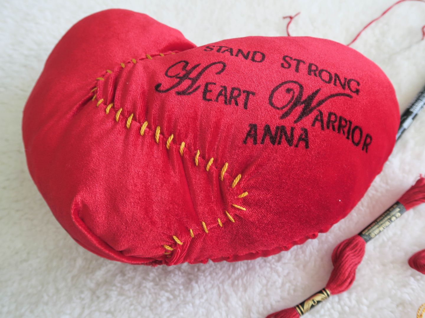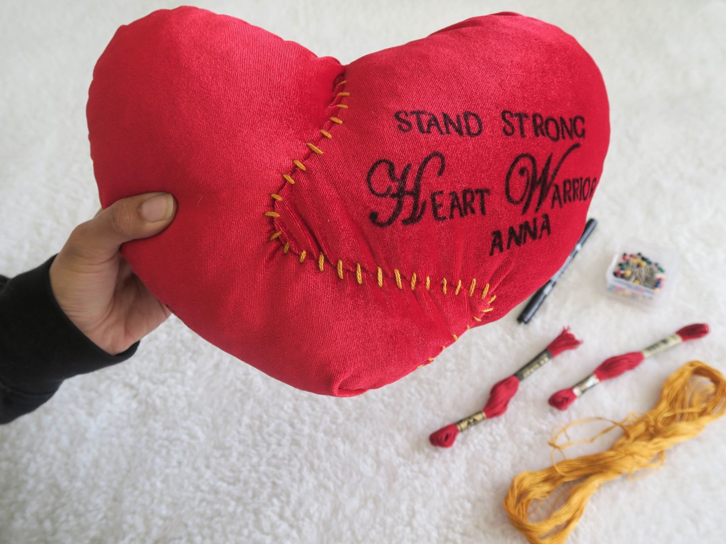 My artwork is deeply personal. It was born out of my personal experiences with open heart surgery. Some hospitals donate heart pillows to heart patients after surgery but my heart pillows are unique and special because another heart patient makes them my hand.