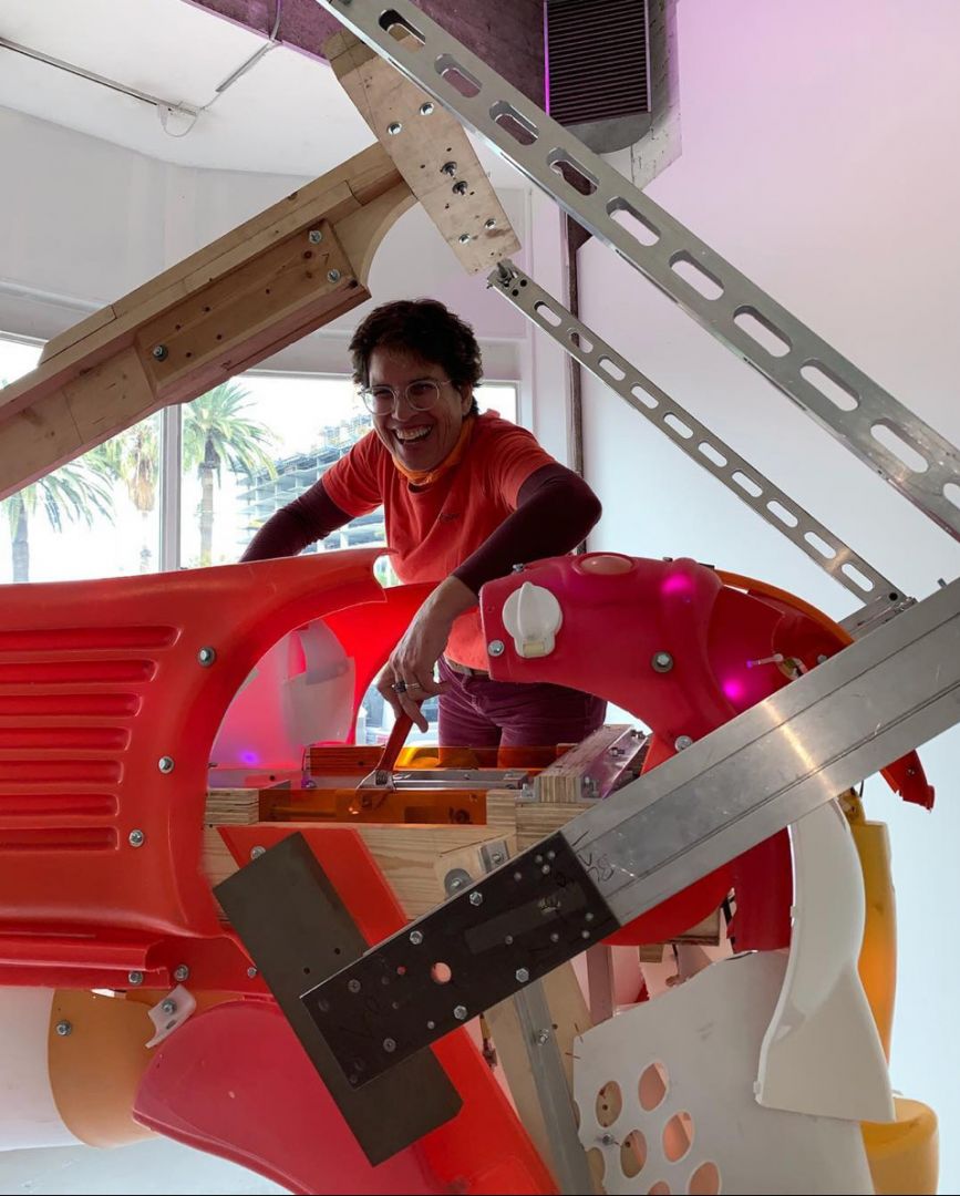 There are so many people to thank for their assistance, encouragement, mentorship and love, so it is a long list. First a shoutout to my first art teacher, artist Susan Weinberg, who taught me painting and sculpture from her studio under the Santa Monica Pier. Paolo Carosone, at the Tyler School of Art in Rome made me love sculpture above all other arts. Stephen De Staebler, who was a great mentor in grad school. In my early teaching years, a shoutout to another mentor, Patricia Crosby Hinds. My exhibition record really began when I moved to the Brewery Art Colony, and I have Scott Katano, to thank for that, as well as Mat Gleason for jurying me into my first group show in Los Angeles. Subsequently, the museum curators who have sponsored my work: Julie Decker, Ariadni Liokatis, Jennifer Cahn, Andi Campognone, and Holly Jerger. My artist friends, of course have been indispensable, in particular my artist support group of Jill D’Agnenica, Holly Tempo, and Barbara Hashimoto, as well as Margaret Adachi, and Jeanine Centuori. My recent collaborations with LED designer extraordinaire Vaughn Hannon, and artist Mike Roof, allowed me to make sculptures that have sequenced lighting and sound, and moving mechanical parts. Photographer Martin Cox has documented my work from the beginning. Throughout, I am grateful for the support and love of my husband Marco Rambaldo, and of my daughter Tania. Additionally, a shoutout to the folks at Crafted at the Port of Los Angeles for continuing to house my work and shipping crates. Finally, Karla Funderbunk of Matter Studio Gallery for my most recent solo show, and Shana Nys Dambrot for a succinctly written LA Weekly Pick of the Week.