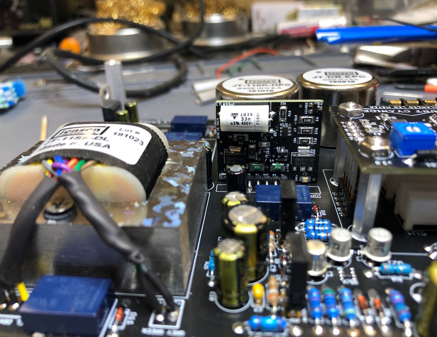 One thing that sets me apart from others that I find the most exciting is that I record all of my music with gear that I’ve wholly designed and built myself. The whole signal chain is made up of Mount Cyanide original circuit designs – mic preamps, equalizers, compressors and filters. No clones! Haha, I’m as proud of my circuits as I am of my songs. And the process is similar. When I say no clones I mean it! Yes, I learn from the past. But I don’t copy it, I build from it. Just as I learn from classic chord progressions, I learn from signal flow. What notes can climax a verse to a chorus or which electronic component can couple a differential receiver into the equalizer section – same thing. Look to the masters. But the core of the composition or circuit should be from my own ideas. As I often record organic elements ( drums, live strings ,etc.) of a song to tape, I utilize a strictly discrete topology in my amplifier like they did in the early 70’s (that means no microchips / integrated circuits) . But then I also use virtual instruments in the most digital of recorders – Pro Tools – in that same song as I use the newest surface mount transistors for current sources in the same amplifier. Pardon to go that dorky but that’s what I’m doing : )