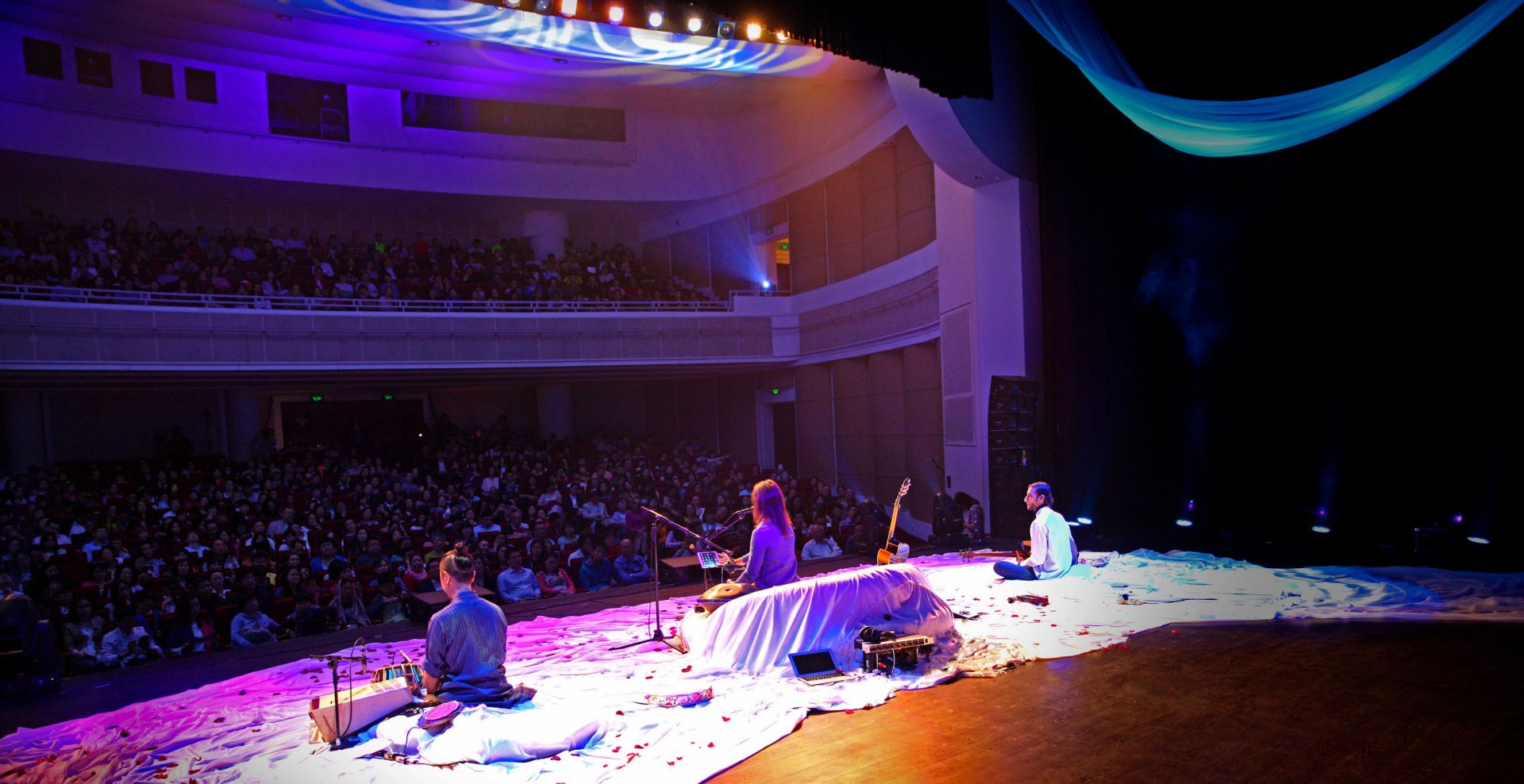 In my early twenties, during the height of my existencial search, I was looking for a vision of the destiny that I wanted to create for myself in this lifetime. I was convinced that following the conventional path that society and my parents were offering me would lead me to a state of disconnect and spiritual amnesia. I realized that in order to bring forth the best of myself into world I would have to find a strong purpose, a life mission. I decided to travel to India on a pilgrimage, in search of a Guru and the transcendental experiences that would give me more clarity and inspiration. The journey that I embarked on touched my heart so profoundly that I committed to learn the ancient language of Sanskrit to be able share with others what words in my language could not express ~ a state of consciousness. This was something beyond the ordinary, a kind of music that was beyond entertainment and could touch the core of our being. The title “awakening through music” was the best way to describe it at that time. During the sacred rituals that I’ve witnessed at the Oneness temple in south India ~ a monumental structure made of white marble that could accommodate 5000 people meditating in a pilar-less hall at the same time ~ I had experiences states of deep meditation by just listening to the power of chanting performed by the monks. I knew that even though I had no idea of the depth of what these mantras meant, I could feel beyond any doubt the strong vibrations that were uplifting me in almost miraculous ways. For me it was beyond religion or tradition, there was something real that I’ve never felt before in my entire life. That’s where I began my journey of composing these primal invocations in the form of songs with modern instrumentation that would carry the transformative power of this ancestral yoga of sound.