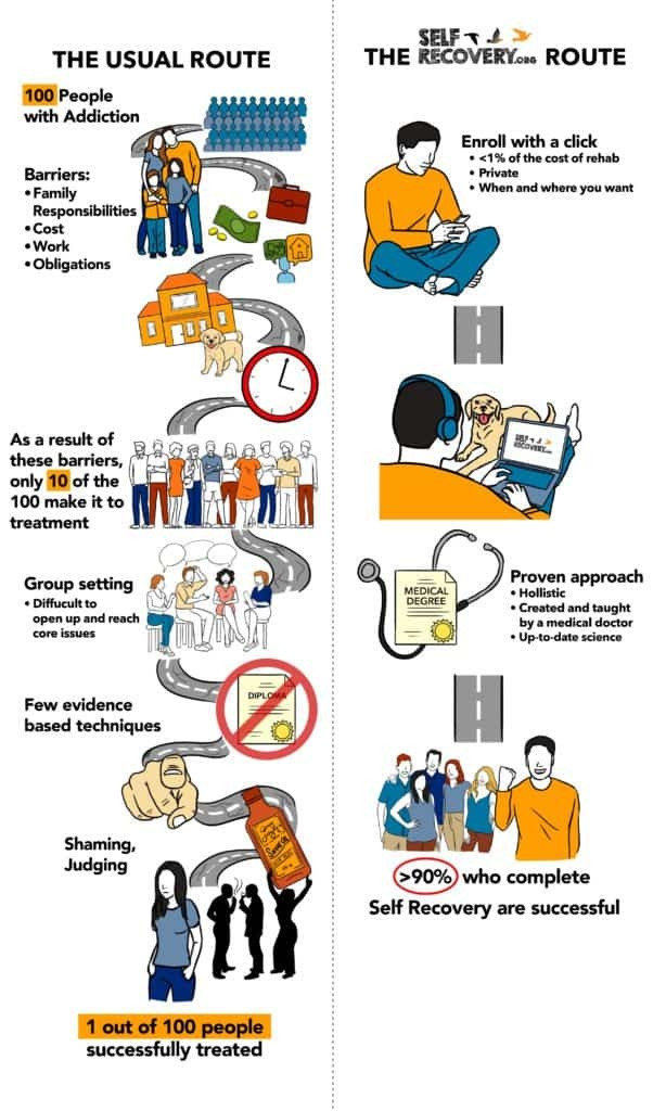 Most people are led to believe that to have a full recovery from addiction, you need to go to rehab. What most people don’t know – even after getting treatment for years – is that the rehab industry has an average success rate of 3-5%. So they not only lack a valuable solution for patients, but they ask for your life savings and promise a life transformation. It’s incredibly disrespectful of that person’s time, money, and energy.