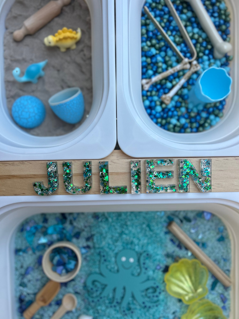 I am not the first person to create sensory bins, tables, and play BUT what sets me apart is me, I have not only a love for my child but a love for your child, I hope my energy and passion shines through my work! I absolutely love personalization, I want to make every detail custom to your child and that’s exactly what I do and what sets me apart, this came very natural to me, the hard part was “pulling the trigger” on starting the company but the creative aspect flows from within.