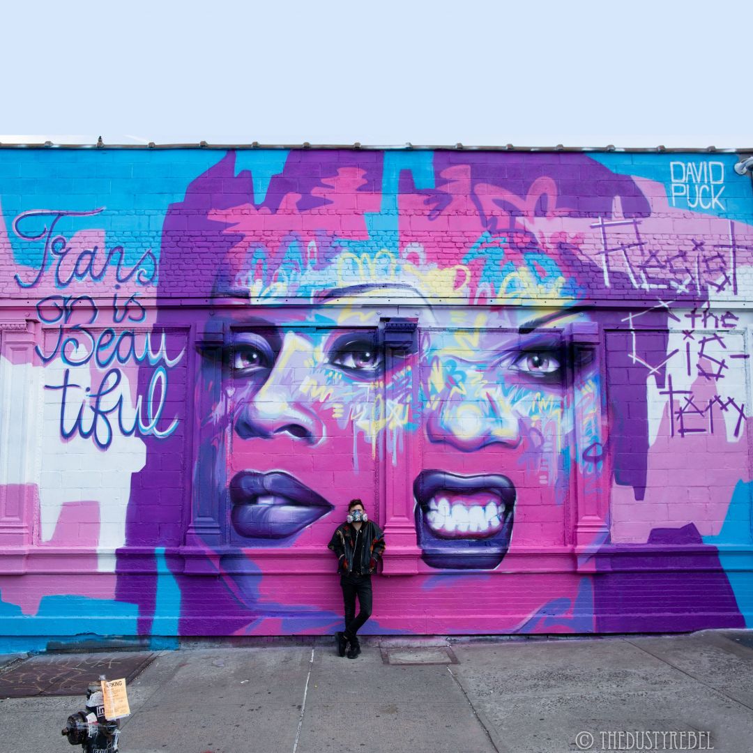 I’m @DavidPuckArtist – a visual artist specializing in abstract-figurative paintings, murals and more recently digital. My work has been focused on queer culture and mental health, particularly through abstracted portraits of Drag artists and queer figures. (I also play with drag and makeup myself @DavidPuckMakeup, usually dressed as inanimate objects). I’ve worked with [queer] figures like Faith Evans, Mayim Bialik, Alaska, Willam, Peppermint, The Boulet Brothers and Hey Qween. I’ve been featured in leading new contemporary art publications like Juxtapoz, Beautiful Bizarre and Hi-Fructose. I’ve painted murals in 8 countries so far, including with festivals like London Mural Festival, Wide Open Walls, NYC World Pride and Art Basel Miami. My work’s been on the networks HBO (‘Euphoria’,), ABC, NBC, BBC, and Amazon Prime. I exhibit internationally including in galleries like Thinkspace LA. I believe in following your passions, even if it doesn’t make sense at the time So I follow what calls me – painting, queer culture, mental health, and world exploration and engagement through murals. It often felt incongruent, but the story is starting to make sense to me and come together. It has to, I’m writing it myself. I’ve always been interested in human perception and connection, how people see and experience the world differently, how stories shape understanding, and especially how this might be explored and applied to improve life experience. I started with a childhood escape into art, which led to a BA in History from The University of Oxford, UK, specialising in Queer History (academic stories), then to my traveling art practice above (art stories), and now I am studying and volunteering in Mental Health Counselling/Therapy (psychological stories). (Mental Health has been a hugely influential factor in my life, and I believe that therapeutic knowledge is capable of healing so much unnecessary suffering in the world, and has unlimited positive ripple effects). Of course there were a lot of stumbling tangents, which were fun and/or painful, but I’ll save those for the novel. Recently I’ve integrated these various strands through my visual podcast ‘Painterview’. Live painting portraits whilst talking to the subject about their life, creativity and mental health. Guests so far have included Drag icons Laganja Estranja and Mayhem Miller, with many more lined up. It was important for me to create a space in which the portrait subjects could express themselves in their own words and perception, to offset my visual representation of them. My biggest lesson at this point in life is to find a way to be kind to yourself, to lead with compassion and curiosity, to have the patience and courage to explore your fears, not avoid them or project onto an external. (Whether that’s blaming an external negative or living in an external future fantasy). Self-security is the greatest gift anyone can receive, it completely transforms life perception, and if you weren’t given it by life, you can create it and give it to yourself through Mental Health science. No matter how dark things seem, don’t give up. Life is change, there will always be change, and even if its taking a step back to take two steps forward, eventually the change will be for the better. You are love. You’ve got this <3