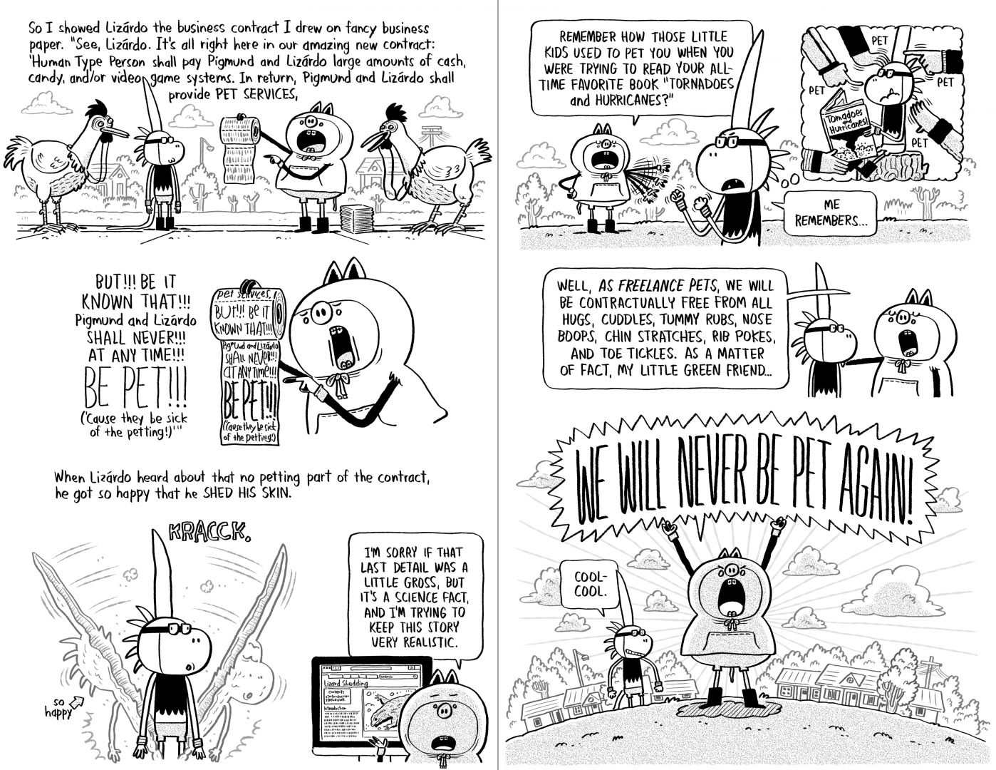 I grew up in rural Missouri where I was always making up cartoon characters and stories. If an adult said I was an artist, I’d correct them: “I’m a CARTOONIST.” But, after college, I had no money and no idea how to do any of that, so I lied about my degree to get a graphic design job at an ad agency. While there, and exploiting company resources, I submitted comic strip features to newspaper syndicates until I finally sold one. That experience gave me confidence, but also taught me to: ONLY PITCH IDEAS THAT WILL KEEP ME MOTIVATED AND INTERESTED.