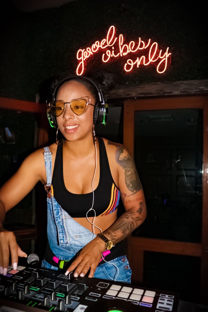 I love music. With music I’m always able to express myself while creating a vibe. Curating a playlist for an upcoming event is genuinely exciting because I’m not just making it for myself, I’m making it so others can feed off the energy I’m bringing them. When I get booked for an event it’s a blessing because it says someone is allowing me to walk into a room/space and set a tone for the night. So much pressure yet so fulfilling when the job is not just complete but successful! I love those looks I get when I drop a hot track or when people look over their shoulder and hit me with a wink, or even that infamous finger point. I know I’ve done something right when everyone is busting out their best dance moves.