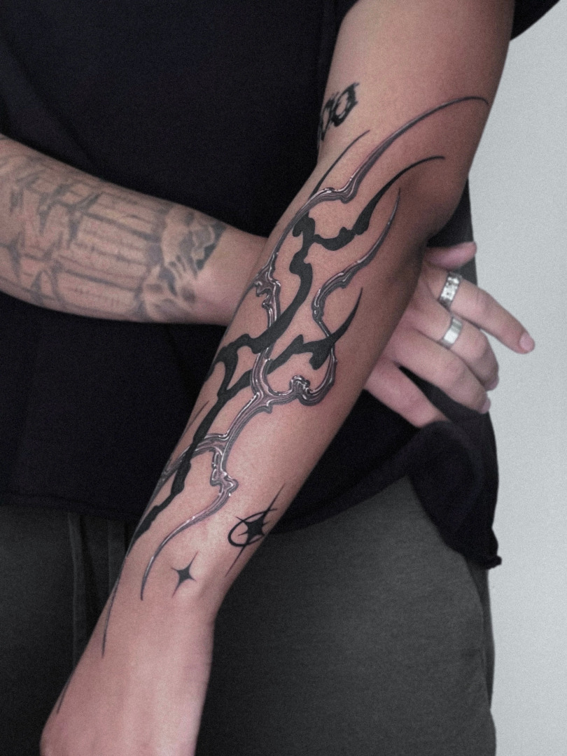 My art is rooted in tattooing, but it’s shaped by how I think about composition, contrast, and how images live on the body over time. What sets my work apart is the balance I try to find between graphic clarity and organic flow. I’m interested in creating tattoos that feel strong and intentional, without being overloaded, pieces that hold their structure and presence as the body moves and ages.