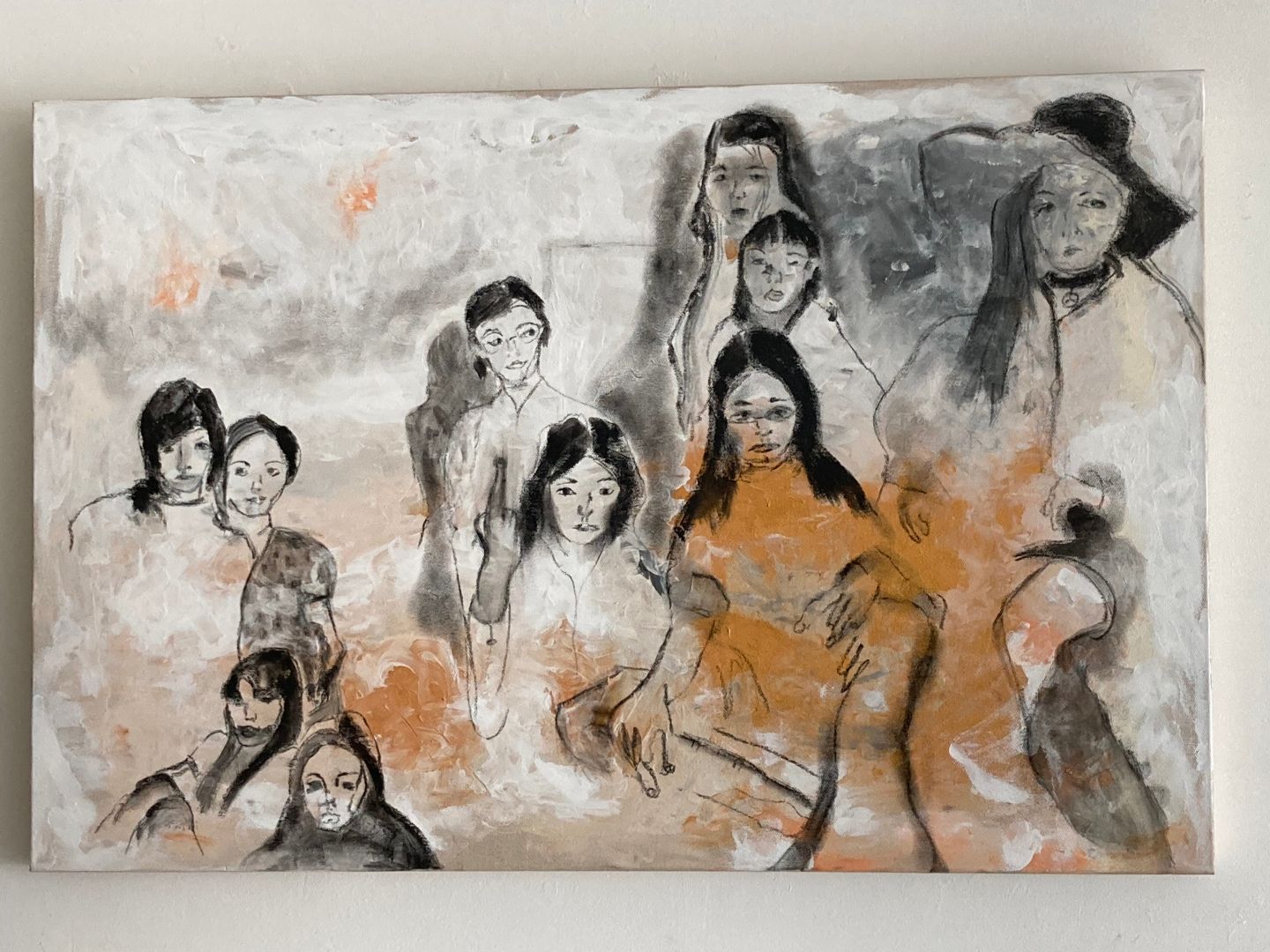 The subject matter of my work is my own personal story, which sets me apart from other artists. My ethnicity plays a role in this, as Asian parents want their children to be professionals, but not artists. The scarcity of the subject matter in conjunction with the many viewers who share similar emotions, have provided me with a platform. By telling my story, I am building pride for groups of people, who in the past have been under represented to the point of being invisible. I enjoy interacting with my audience and feeling their relief and excitement that their story matters! One of my best pieces is titled “ Les Demoiselles d’Angeles. Loosely based on Picasso’s Les Demoiselles d’Avignon, it is a painting of ten defiant young Asian women from L A. I referenced a photograph taken in the early 70’s. The women are looking directly back at the viewer. It has not been easy to become an artist as there are many nay sayers, some of whom are your close friends and relatives. They are suspicious of your motives, simply because they themselves are unable to tap into their emotions. As time has passed, they are now proud. I would like the world to know that an internal struggle can reveal a visual and instinctual interplay that can take you on a journey.